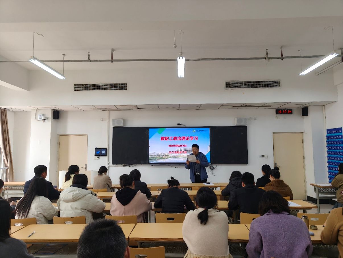 为深入学习贯彻习近平新时代中国特色社会主义思想,进一步提高教职工政治理论水平,增强政治素养,测绘地理信息学院召开2025年2月份教职工政治理论学习。