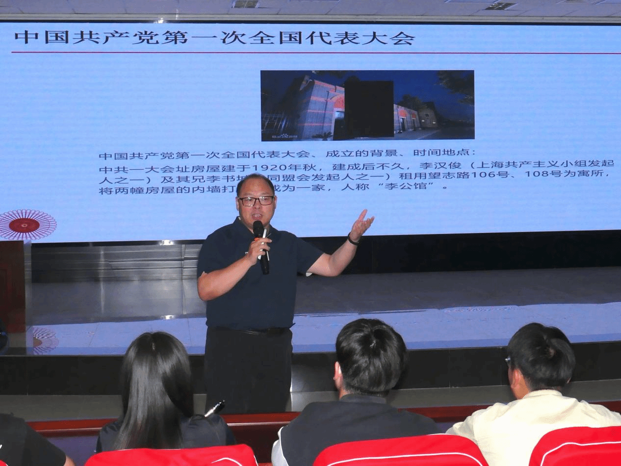 务文涛以中共一大的召开为历史起点,详细讲述了中国共产党诞生的历史细节,并通过珍贵的历史影像资料和一个个鲜活生动的案例,将中国共产党在成立初期面临的复杂局势和艰难抉择生动地展现在同学们面前。他深入浅出地讲解了党在不同历史时期如何将马克思主义基本原理与中国革命实际相结合,形成了一系列具有中国特色的理论成果。他强调,这些理论成果和斗争经验是中国共产党人在长期革命实践中用鲜血和生命换来的宝贵财富,是我们不断前进的强大思想武器。在互动环节,同学们围绕“青年如何在守正中实现突破”等话题展开了积极讨论,大家各抒己见,气氛热烈。