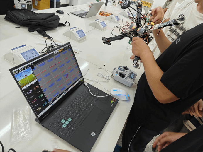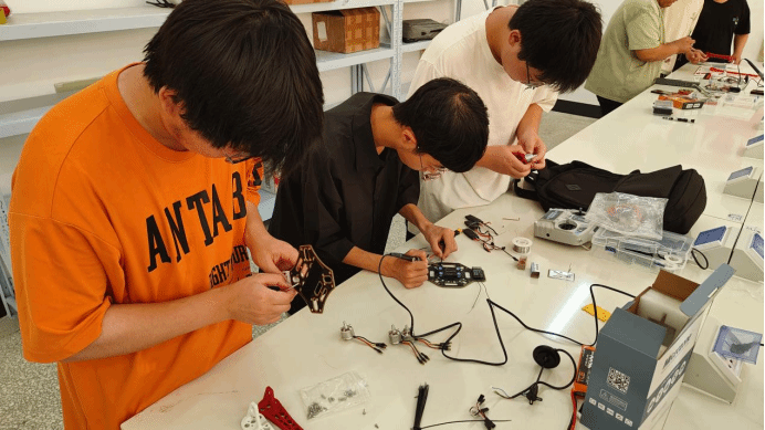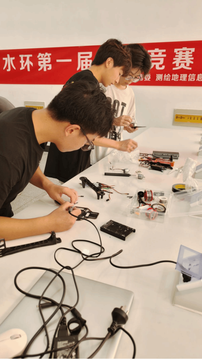 本次竞赛包含初赛和决赛两个阶段。初赛重点考察参赛选手的理论功底,内容涵盖无人机原理、组装调试理论、飞行安全规范等基础知识。最终,根据小组总分排名,10组队伍脱颖而出,晋级决赛。决赛在力行楼无人机装调室与操场分阶段进行,包含无人机组装、调试、飞行三项核心任务,聚焦考察参赛选手的技能操作、职业精神、团队分工与协作能力。