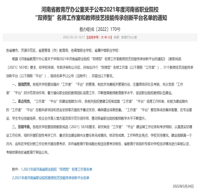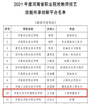 我院联合杜志刚技术技能大师工作室成功申报了2021年度河南省职业院校教师技艺技能传承创新平台—工程测量技术。
