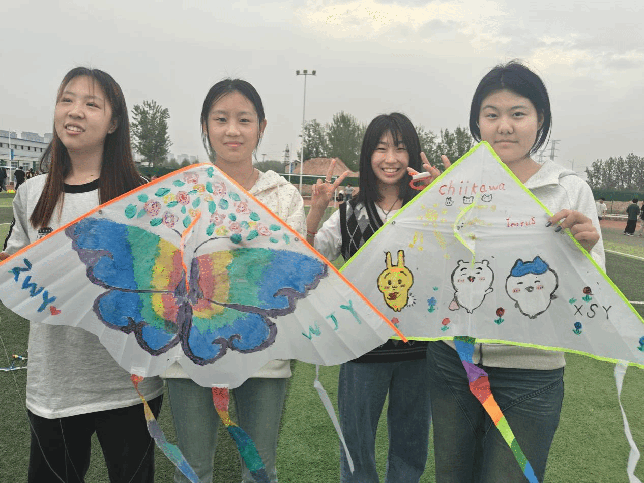 本次活动以风筝为独特纽带,巧妙划分为风筝制作、放飞展示以及创意评比三大精彩环节。活动现场,同学们以三人小组为单位集结。在风筝制作环节,大家充分发挥想象力,手持画笔在风筝布上尽情挥洒,或勾勒春日愿景,或书写心愿,或绘制个性图案。随着风筝制作完成,各小组满怀期待地来到操场,开启了放飞展示环节。五彩斑斓的纸鸢在同学们的牵引下,缓缓升上天空,与湛蓝的天空相互映衬,构成了一幅如诗如画的美景。在创意评比环节,经过现场投票,最终评选出了一等奖9名、二等级15名、三等奖21名。