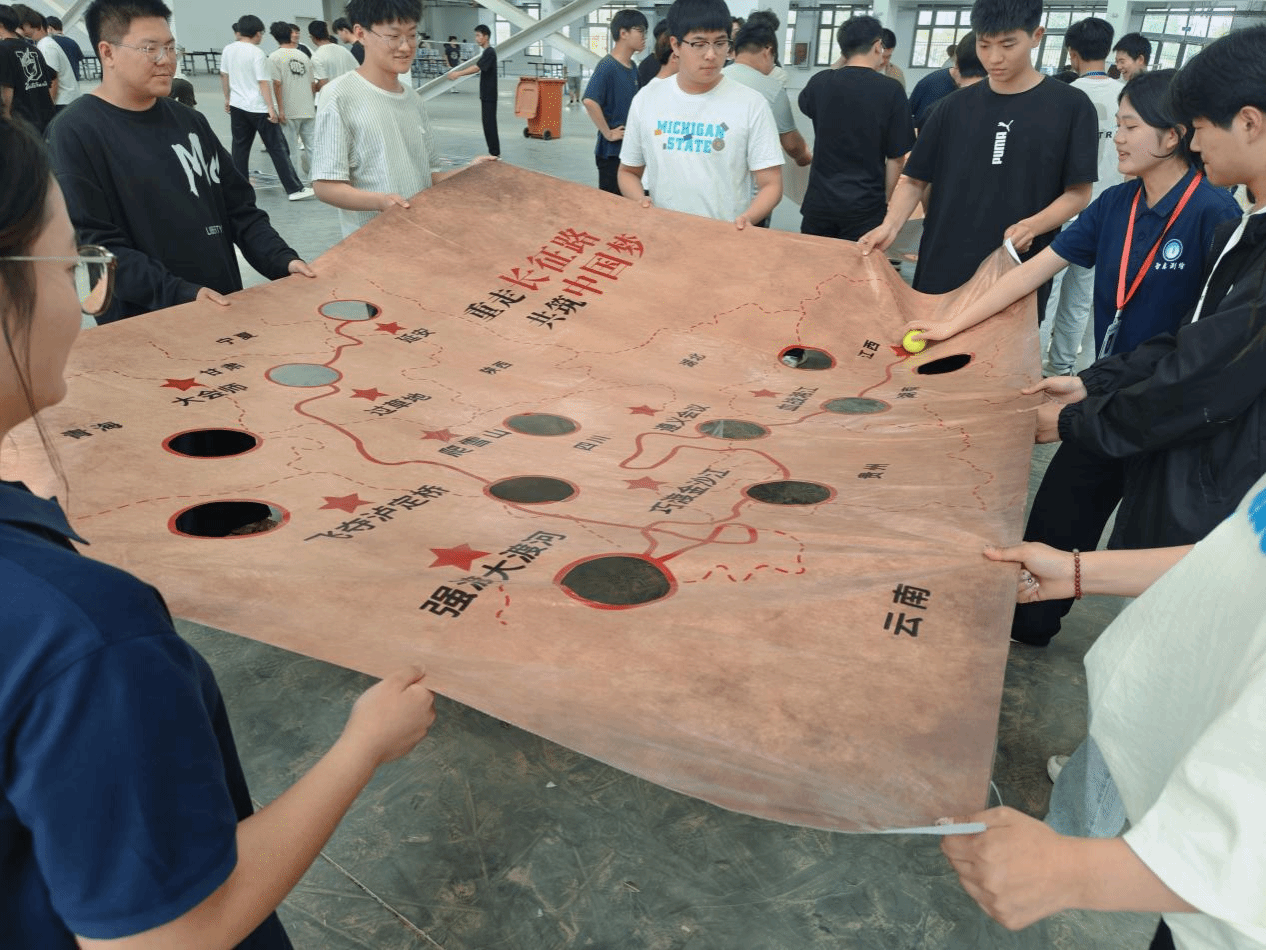 在“同频破风者”这一肢体协调挑战中,参赛者需以同侧手脚同步的方式完成竞速,这一新颖的比赛形式让不少同学初时手忙脚乱,甚至出现了同手同脚的有趣场景,引得现场观众阵阵欢笑。而作为压轴大戏的“众擎控球 洞藏玄机”,更是将活动推向了高潮。8人团队需共同操控一张大帆布,既要确保小球不落地,又要巧妙避开布面上的5个“陷阱”洞口。每当小球惊险地擦过洞口时,现场都会爆发出阵阵惊呼与掌声,而最终成功护球到达终点的团队,则荣获了“终极守护者”的殊荣。
