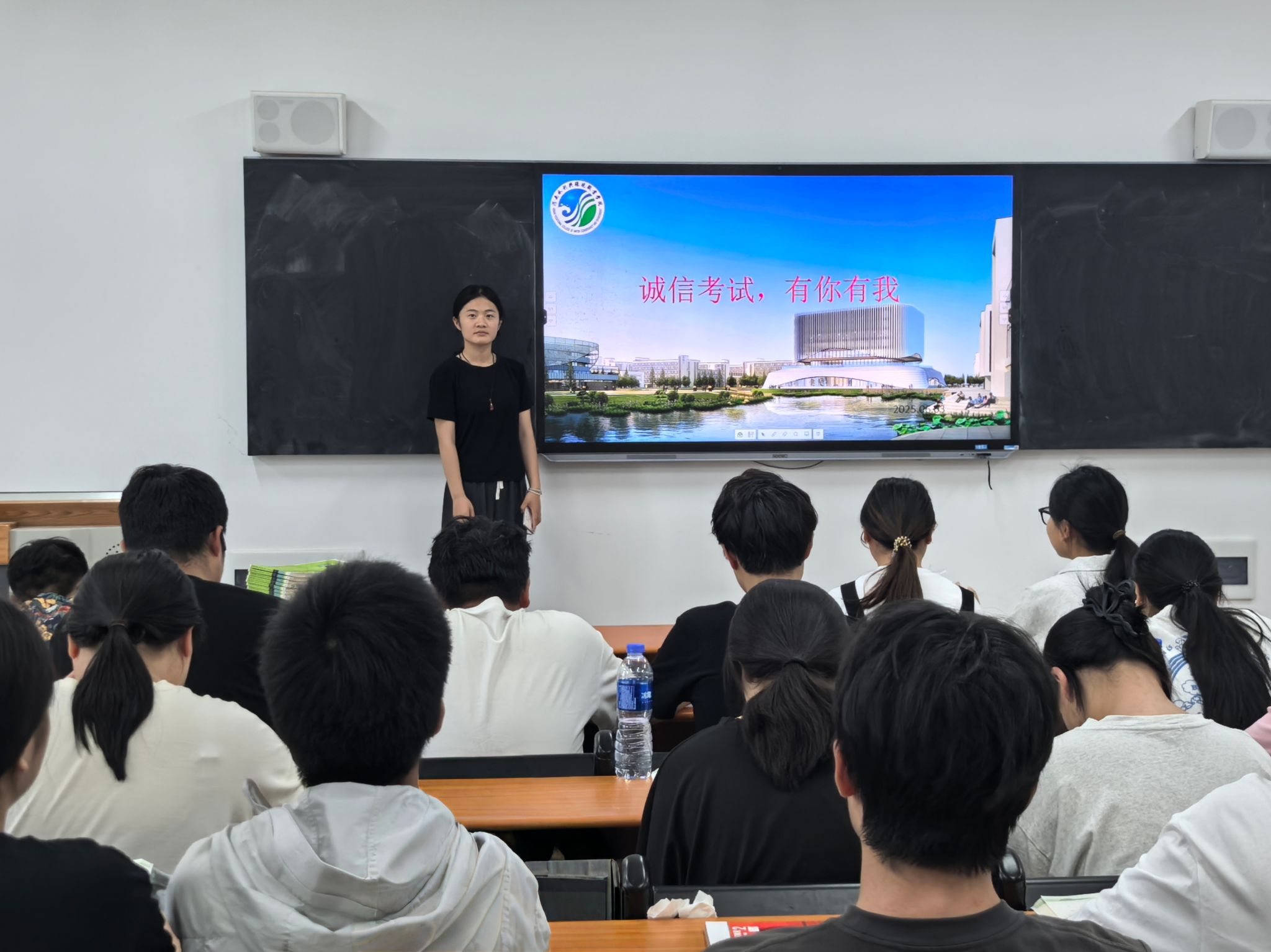 此次活动覆盖学院全体同学,以班级为单位深入推进,旨在筑牢学生诚信根基,大力弘扬优良学风。活动期间,辅导员老师和各班班长、学习委员紧密配合,通过线下主题班会的形式,带领同学们深入学习学校关于考试的各项规章制度,引导同学们深刻认识到诚信考试的重要性,将诚信意识真正内化于心、外化于行。集体诚信宣誓仪式成为本次班会的核心环节。在领誓人的带领下,全体同学整齐举起右手,以铿锵有力、掷地有声的誓言,表达了对诚信考试的坚定决心。誓言声声,回荡在每一个教室,深深烙印在每位学子的心中。各班宣传委员拍摄、记录了宣誓的过程,并留存了现场照片。这些珍贵的影像资料,不仅为本次诚信教育留下了生动的见证,更将成为同学们日后回顾和反思的重要素材。