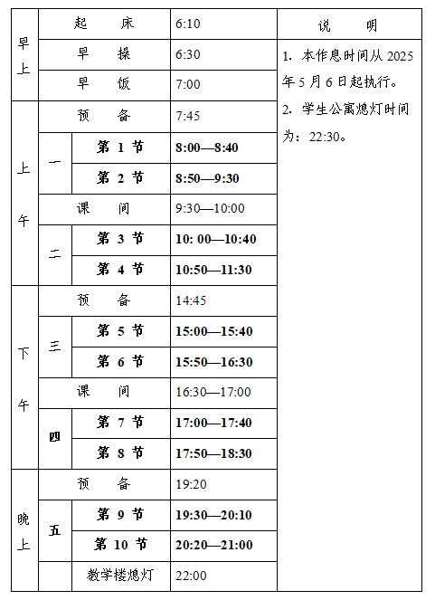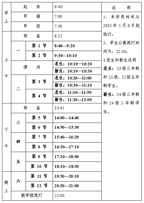 ylzzcom永利总站线路检测2025年(夏季)作息时间表