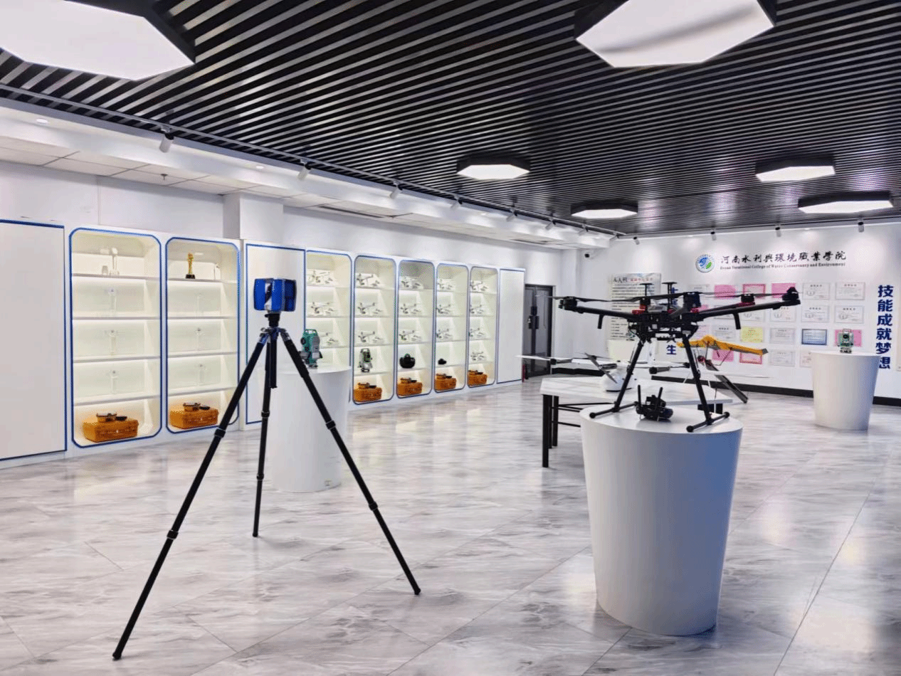 3.实训条件优良。实训环境优越,设备先进,拥有一流的摄影测量与遥感软硬件设备。现有摄影测量实训室、遥感图像处理实训室、无人机摄影测量实训室等六个实训室和一个省级职业教育虚拟仿真实训基地(智能测绘)。设备总值1000多万元,无人机20台、51套全数字摄影测量工作站、1套大数据处理服务器、100套数字摄影软件、50套遥感软件、GNSSS接收机 、全站仪、精密水准仪等先进测绘设备满足教学及实训需要。