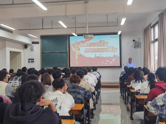 11月18日,校党委委员、副校级干部赵广杰到水利工程系为学生讲授党的二十届三中全会精神专题思政课。