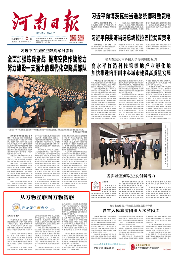 “释放数字新经济的潜力,取决于构建一个万物互联的世界。”权威数据显示,截至2024年8月末,我国物联网终端用户达到25.65亿户,今年我国物联网连接数有望突破30亿。物联网数据被称为人工智能算法的“食粮”,物联网与人工智能的融合将实现从万物互联到万物智联。