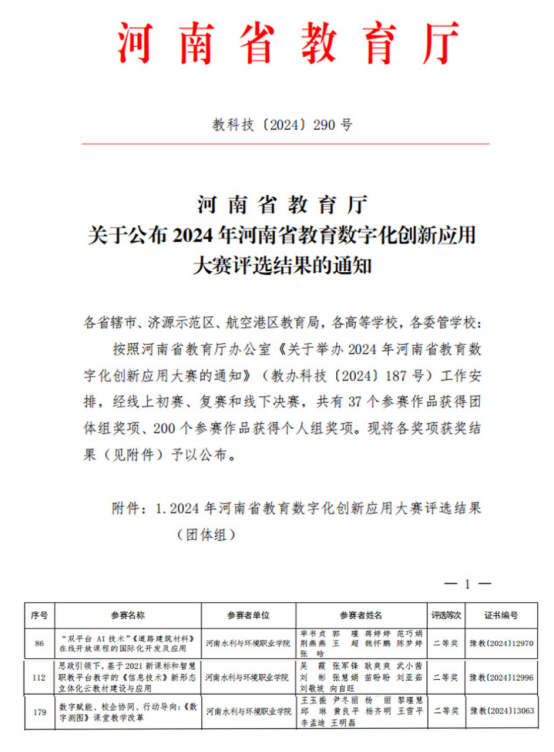 近日,河南省教育厅公布了2024年河南省教育数字化创新应用大赛评选结果,ylzzcom永利总站线路检测荣获个人组二等奖3项。