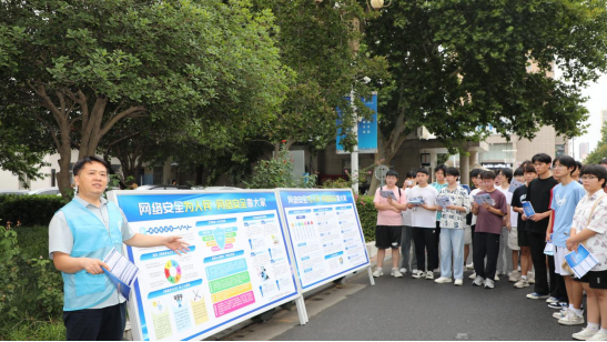 活动通过网络安全宣传展板展示、发放书签和现场讲解的方式开展。信息化管理办公室主任邢培振向同学们介绍了开展国家网络安全宣传周的重要意义,讲解了数据安全和个人信息保护、网络诈骗的手段与方式以及人工智能安全等方面的网络安全知识。老师们还到图书馆、餐厅、校门口等场所发放国家网络安全主题书签,提醒同学们提升自身网络安全意识,关心、关注国家网络安全。