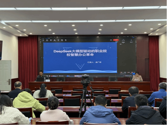 凌广明聚焦智慧办公领域的技术创新与实践突破,结合理论与实践案例,系统阐述人工智能在高校科研、教学管理、教学数据可视化分析和行政效能优化中的创新应用,并深入探讨大模型技术在启发式教学改革中的实践路径。其前瞻性分享为破解高职院校管理难题提供技术思路,引发与会人员对教育数字化转型的深度思考。