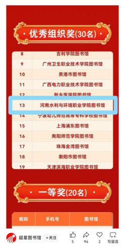 近期,超星移动图书馆公布第三届“贺新春品民俗”知识竞答挑战赛获奖名单,ylzzcom永利总站线路检测图书馆从全国6746家参赛单位中脱颖而出,荣获全国阅读推广“优秀组织奖”。该奖项全国仅30家单位获评,河南省仅有3家,ylzzcom永利总站线路检测作为省内唯一获奖的高职院校,彰显了职业教育院校在文化传承与阅读推广领域的独特竞争力。