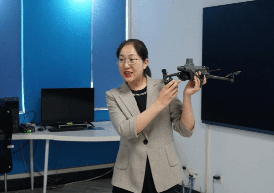 无人机科普教学环节中,尹冬丽在无人机试验模拟室系统讲解无人机的结构原理、功能特性及飞行控制技术。李春锋老师通过实物拆解的讲解方式,以“电池是心脏,传感器是眼睛,飞控芯片是大脑”的生动比喻,让复杂航空技术通俗易懂。