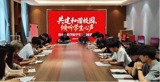 副校长张竟超与校党委委员、副校级干部赵广杰在机电工程学院学生干部座谈会上,听取学生关于职业发展、校园生活等方面的建议。针对校企合作、校园设施等问题,两位校领导现场回应,表示将深化访企拓岗、优化校园服务。赵广杰强调将推进项目化教学、整改校园设施;张竟超就就业问题,鼓励学生树立正确就业观,做好职业规划,注重实践和经验积累。