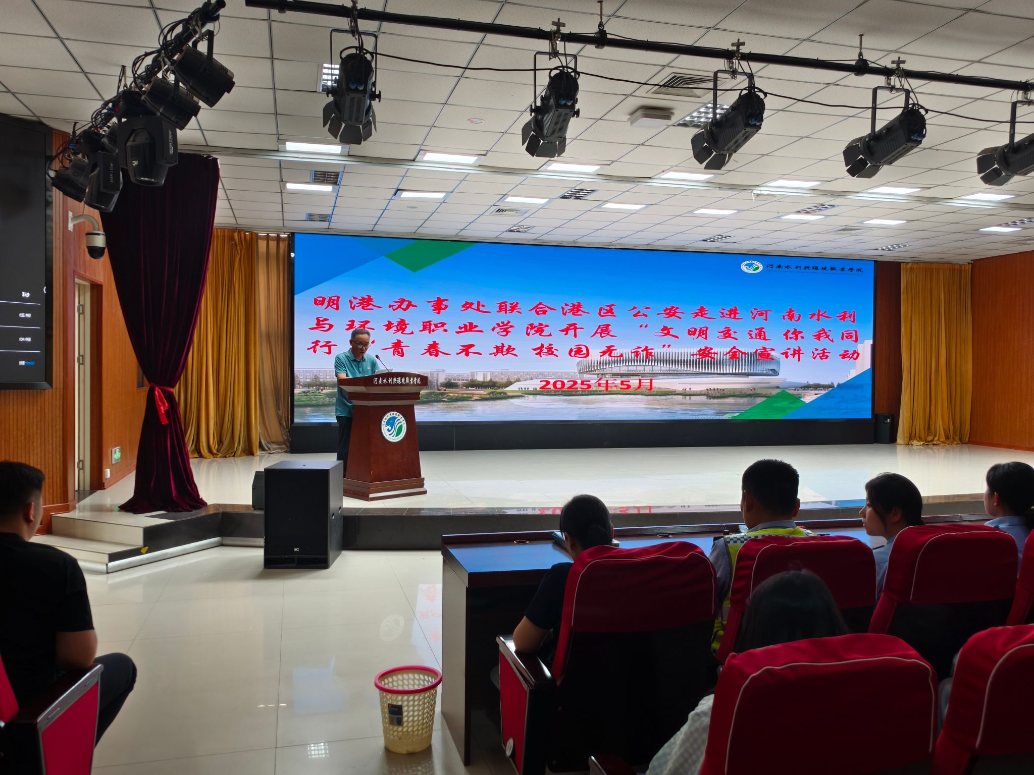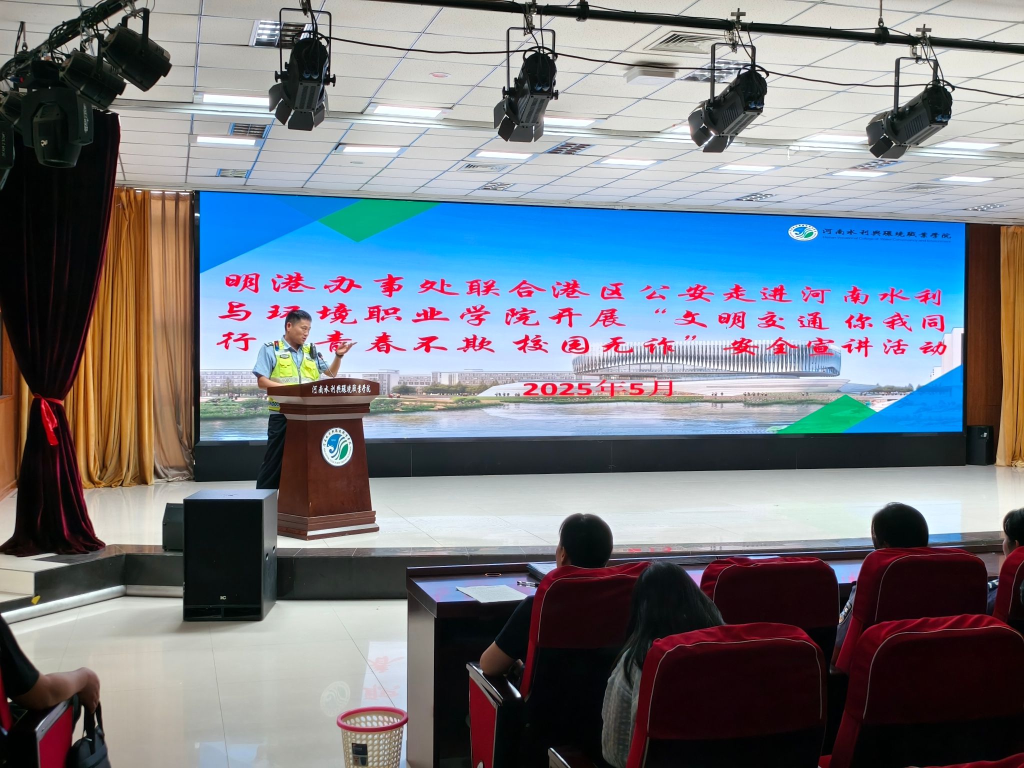 5月27日下午,由校党委安全工作部组织的“文明交通,你我同行”“青春不欺,校园无诈”安全宣传活动在航空港校区德礼讲堂一楼举行。活动由党委安全工作部部长汪志华主持,明港办事处党工委副书记、纪工委书记王宁,航空港公安分局交通管理大队民警李春波、反诈大队办公室主任刘涵婧,ylzzcom永利总站线路检测团委负责人及各学院师生代表共同参与。