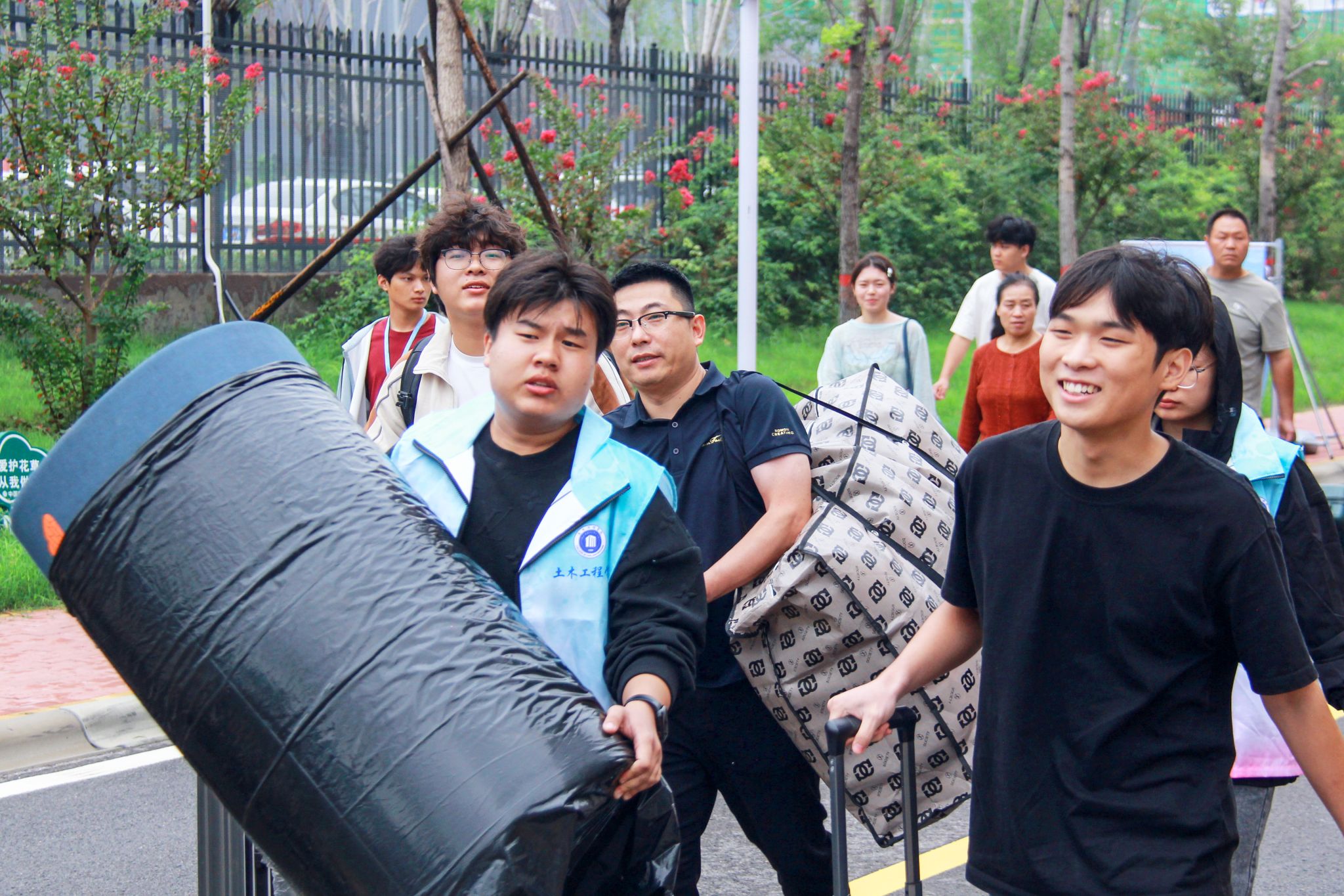 校领导一线走访:关怀暖人心。报到期间,校党委书记李广慧、校长李志萍等校领导带领相关部门负责人深入迎新现场,实地检查报到流程、后勤保障及安全措施落实情况,并走访食堂、宿舍等场所,现场协调解决新生及家长的实际问题。“校园环境好、食堂菜品丰富,虽遇雨天,但学校的安排让我很安心,特别期待大学生活!”水利工程学院新生李世豪说道。
