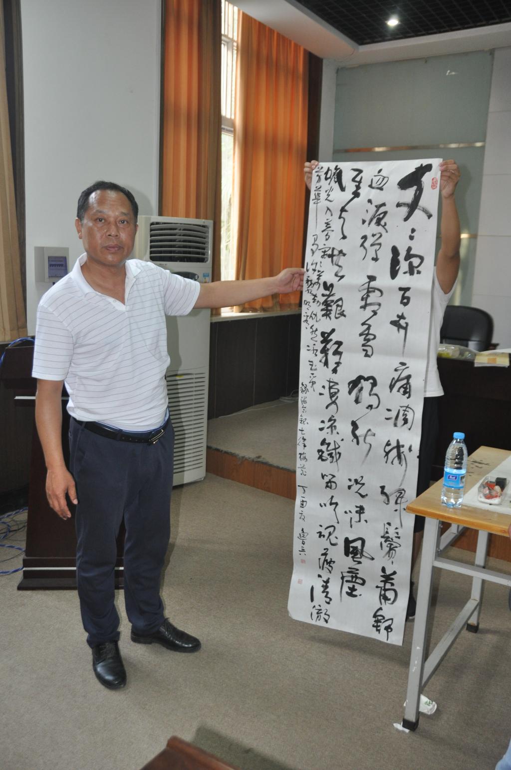 本次活动特邀河南省书法家协会会员、黄河书法家协会副秘书长梁峰与我院热爱书法的教师张健、文琳、鲁兵、李中飞及院学生书画协会161212班学生黄玉超等同台展示书法技艺。院40多名书法爱好者参加了活动。