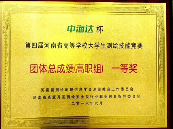 2016年6月3日,由河南省测绘学会举办的“第四届河南省高等学校大学生测绘技能竞赛”在华北水利水电大学开赛,此次比赛共有来自全省10所本科院校和10所高职院校参加比赛。我院参加了高职组的测绘类三个项目的比赛,经过2天的激烈角逐,我院土木工程系4位选手沉着应战、密切配合,最终荣获团体一等奖的好成绩,为学院赢得了荣誉。