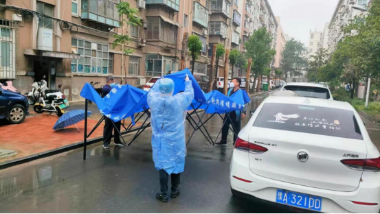 几天来,气温突降,冷雨拍打,道路积水。门卡等各处仍持续值守,无人脱岗,雨幕中打雨具的“检测长龙”一字排开井然有序。人们记不起她的真名实姓,总能亲切地称呼她“小蓝”。她就是学校科研外事处的老师李欣烨,不忘入党初心,坚持值守在试剂采样、人群扫码登记岗站,耐心细致,确保准确无误。她总是微笑着、隽美着……静静地传播着、扩散着浓郁的温情。