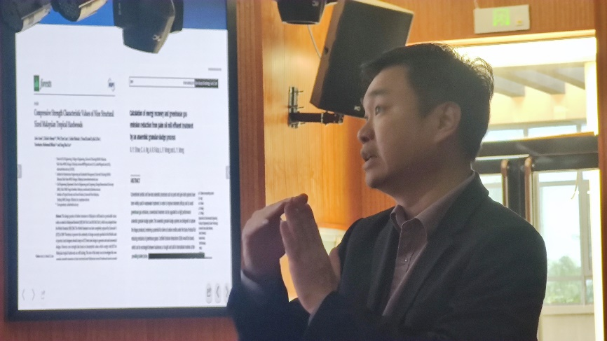 Tan Yong Chai、AIDA、FAIZA三名教授围绕“全球碳排放挑战、国际水资源管理以及新型建筑材料”等内容作了学术讲座。AIDA教授详细介绍了其在工农业废水处理、生物膜反应环境治理、水培种植系统等方面的研究成果,分享了治理水资源环境污染和提高水资源循环利用方面的经验与方法。FAIZA介绍了马来西亚特有的木制工程结构、材料及水文预测模型和水环境治理方向的最新研究成果。Tan Yong Chai讲解了团队在科研项目上的最新研究成果及推广应用情况,表达了与ylzzcom永利总站线路检测教师交流互访和协同开展科研项目研究等方面的合作意愿。三名教授的报告内容丰富,讲解透彻,紧贴水资源综合利用开发、数字孪生流域建设、新材料等研究的新趋势,赢得了全场热烈掌声。