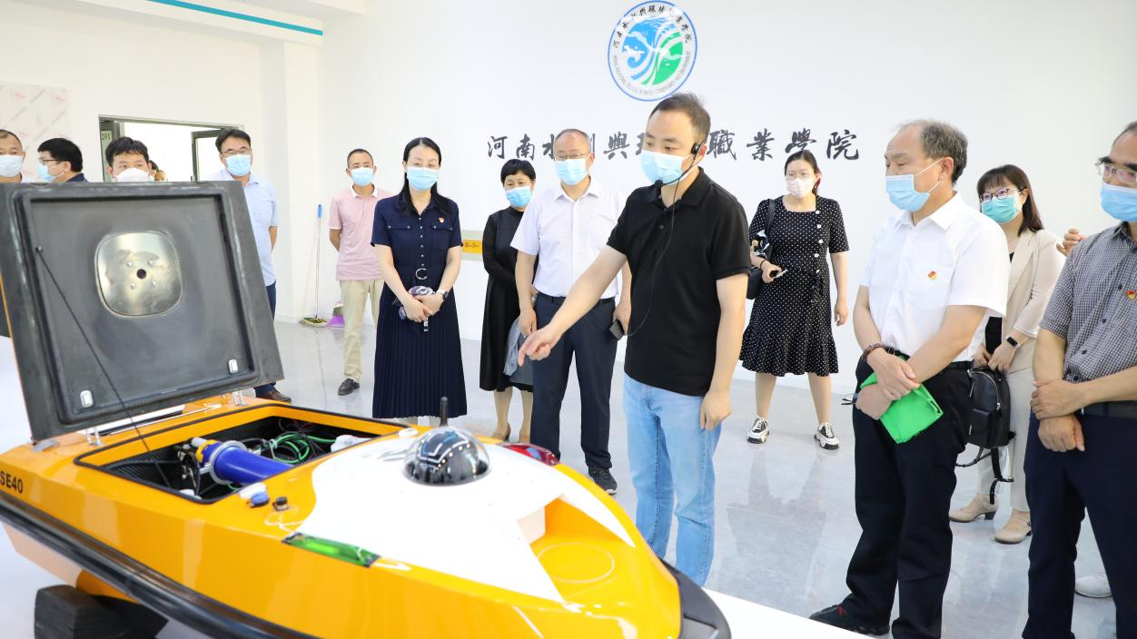 省水利厅一行实地察看了ylzzcom永利总站线路检测航空港校区,对学校近年来的快速发展表示赞赏,并观摩了专业实训教学中水利科技应用情况。