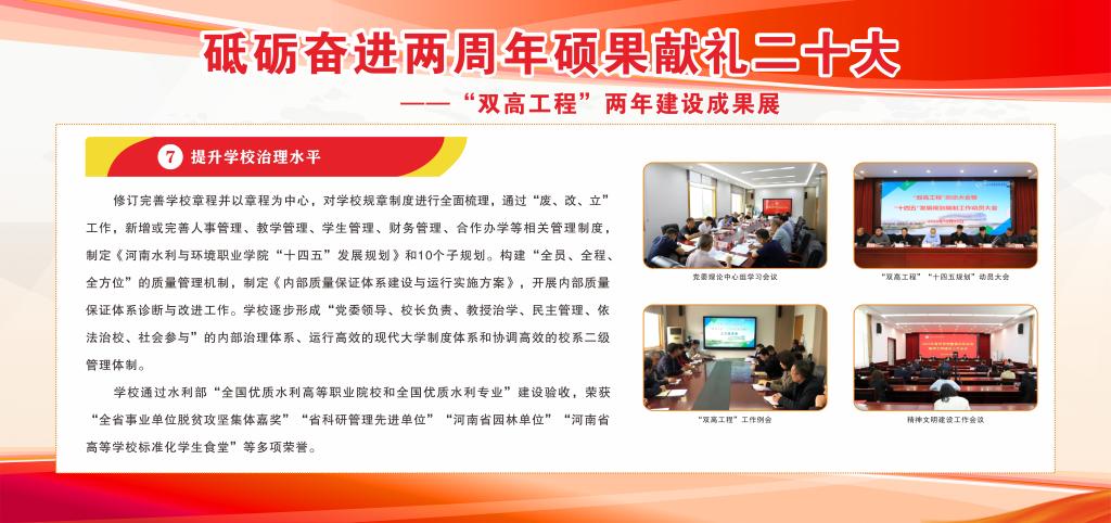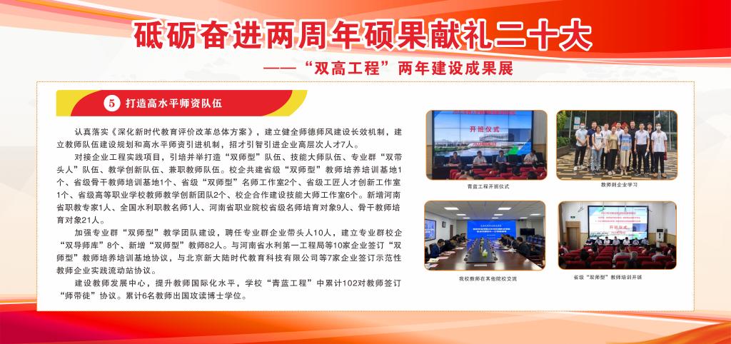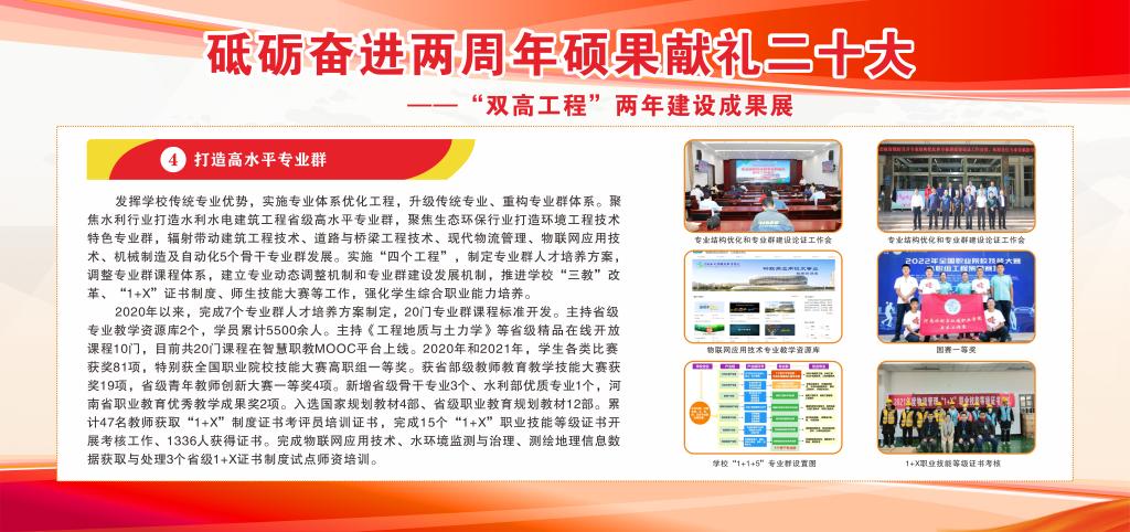 自2020年8月获批河南省高水平高职院校和高水平专业群立项建设以来,ylzzcom永利总站线路检测坚持以习近平新时代中国特色社会主义思想为指导,全面贯彻落实习近平总书记关于教育的重要论述,坚持党建为引领,聚焦“一落实、四打造、五提升”十项“双高工程”建设内容,有计划地推进各项任务落地见效,助推教育教学创新发展,在引领职业教育改革发展和人才培养、支撑国家战略和地方经济社会发展、形成一批有效支撑职业教育高质量发展的政策和制度方面做出了应有贡献。