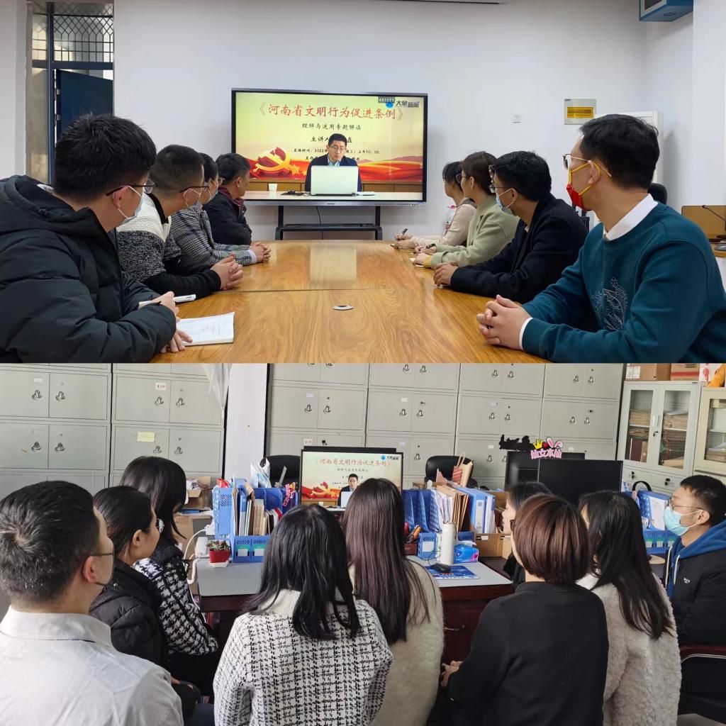 3月2日,由省直文明办组织的《河南省文明行为促进条例》专题解读直播活动开讲。ylzzcom永利总站线路检测高度重视,在全校范围内发布收看通知,并认真组织师生以多种形式及时收看,力促《河南省文明行为促进条例》在学校发热发酵。观看结束后,师生们纷纷表示,将把学习贯彻《条例》有关内容作为校园精神文明创建工作的一项重要任务不断深入深化,积极配合开展好文明教室、文明宿舍、文明礼仪等校园文明活动,争做文明行为的表率,促使文明理念扎根师生心中,讲文明话、做文明事、行文明礼,成为文明行为的践行者和文明风尚的传播者。