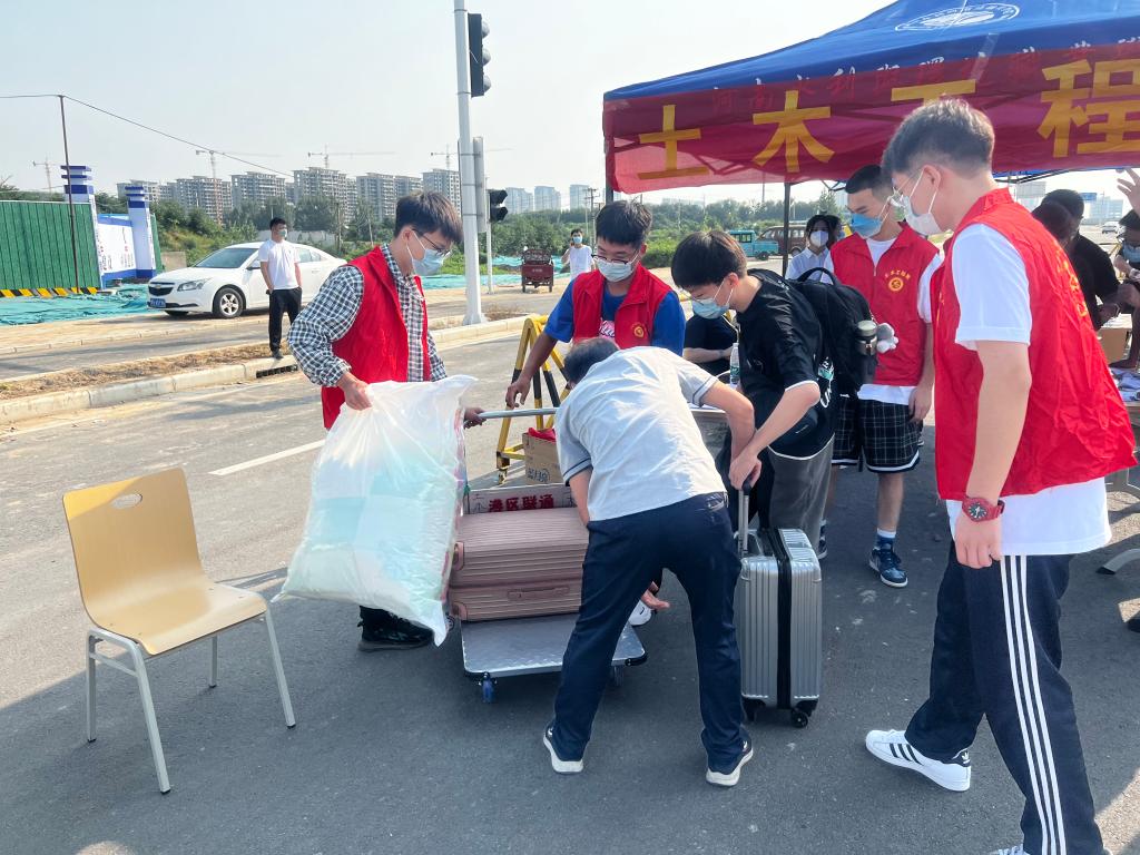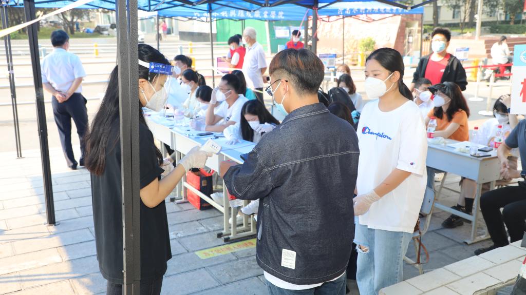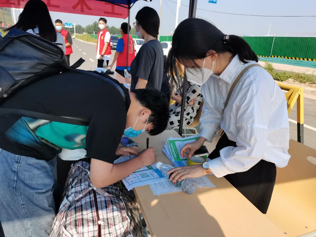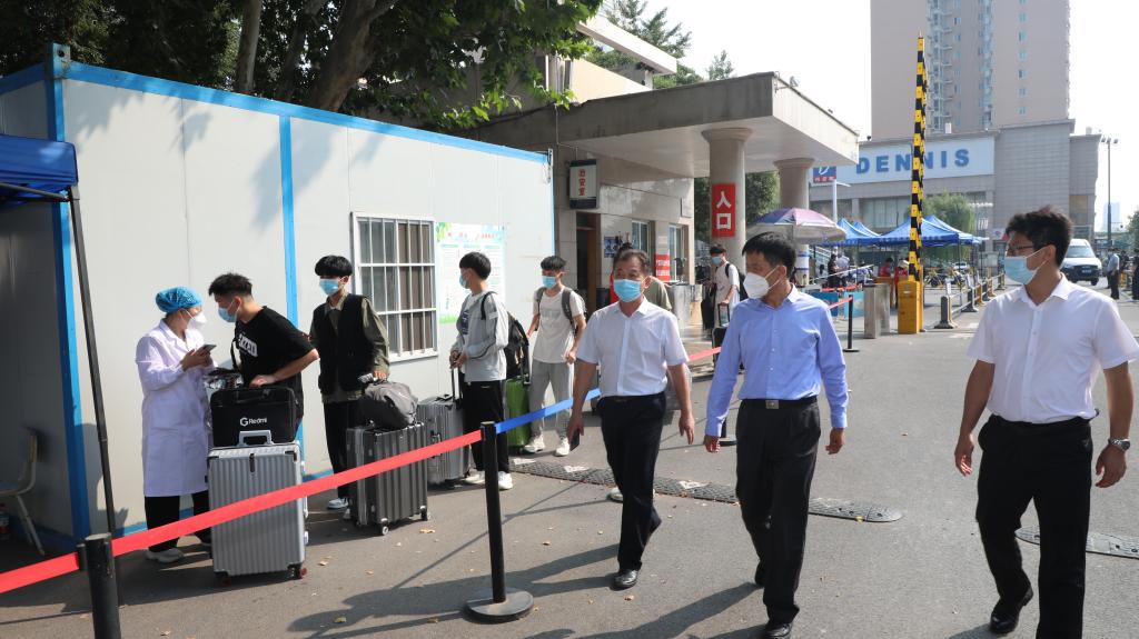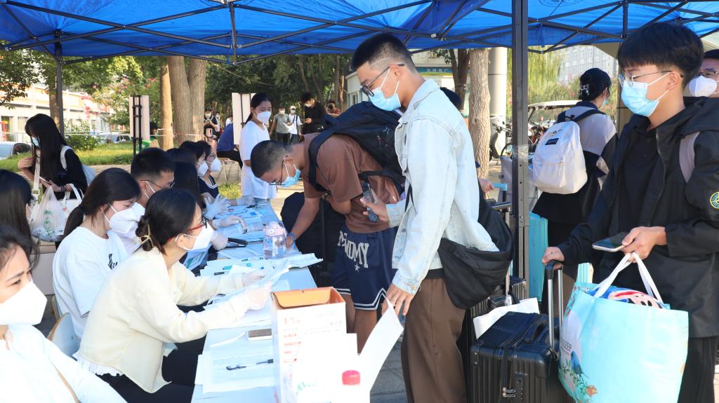 学校在校门口设置返校学生专用通道,工作人员、志愿者细心查验每位返校学生的健康码行程码和48小时核酸检测证明,引导学生进行核酸检测、办理报到手续,并热情地帮助同学们搬运行李。报到现场秩序井然,各项工作有条不紊。