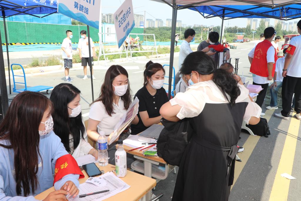 学校在地铁站等交通枢纽设置了迎新接待点,为新生提供接站、带路等暖心服务。