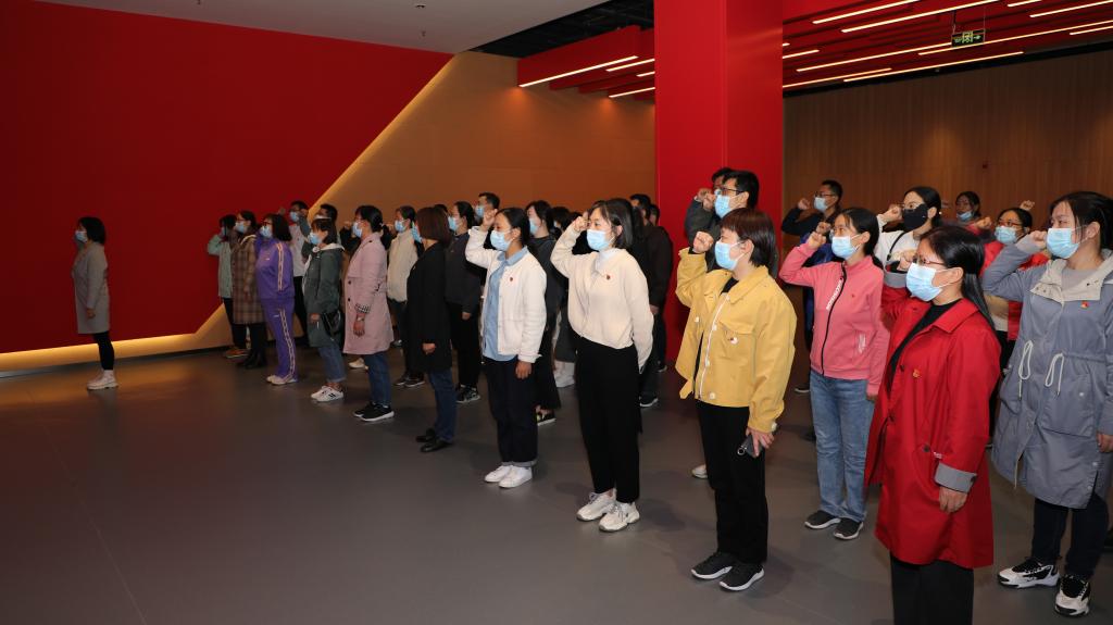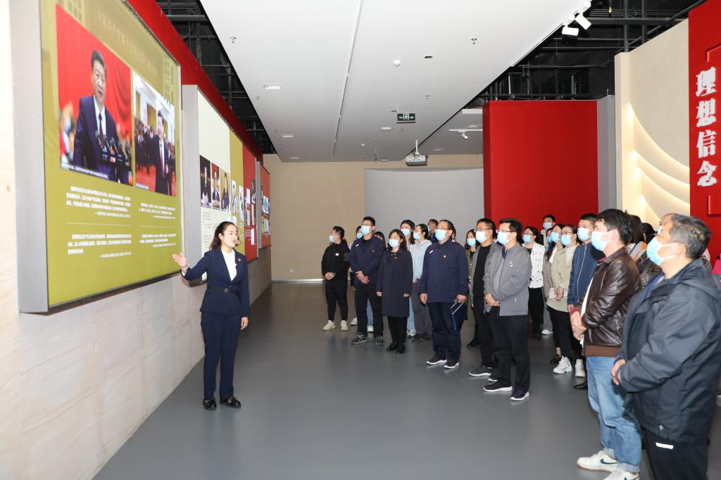 在讲解员的带领下,大家逐一走过“经典论述”“理想信念”“永葆初心”“时代先锋”“出彩中原”五个展区,认真聆听讲解,仔细观看展板、实物、图片和影像资料,不时交流思想,回顾中国共产党的百年辉煌历程,深刻领悟焦裕禄精神、红旗渠精神、大别山精神、长征精神等革命精神内涵。全体党员还在宣誓厅共同重温入党誓词。