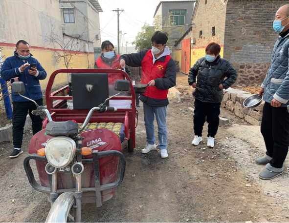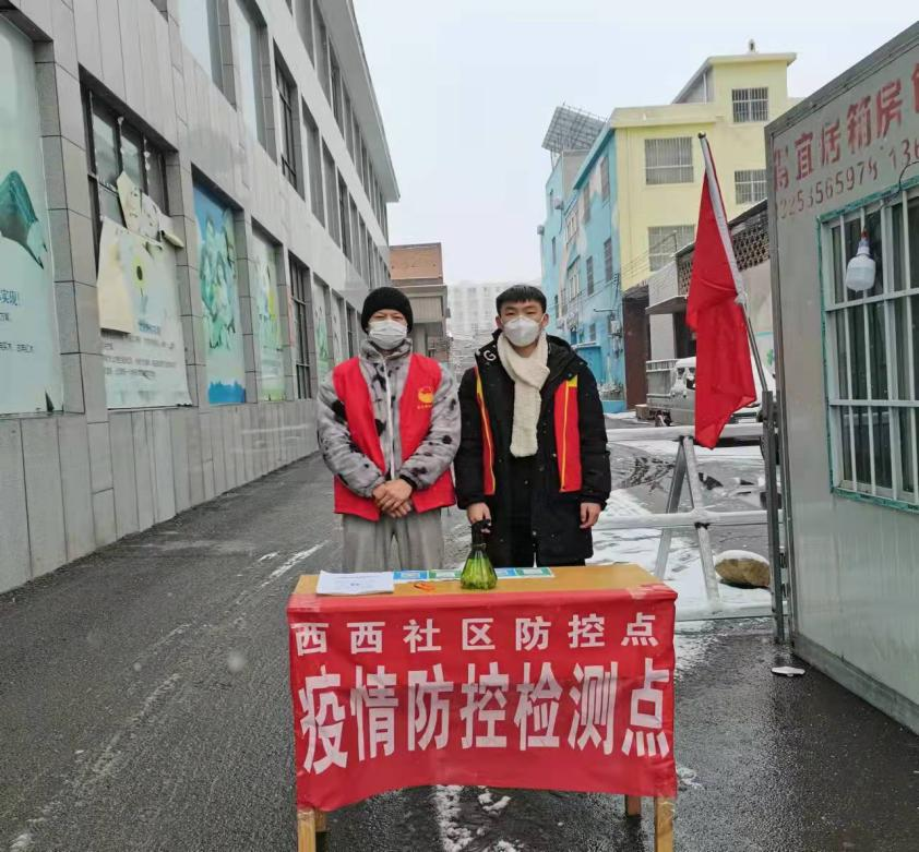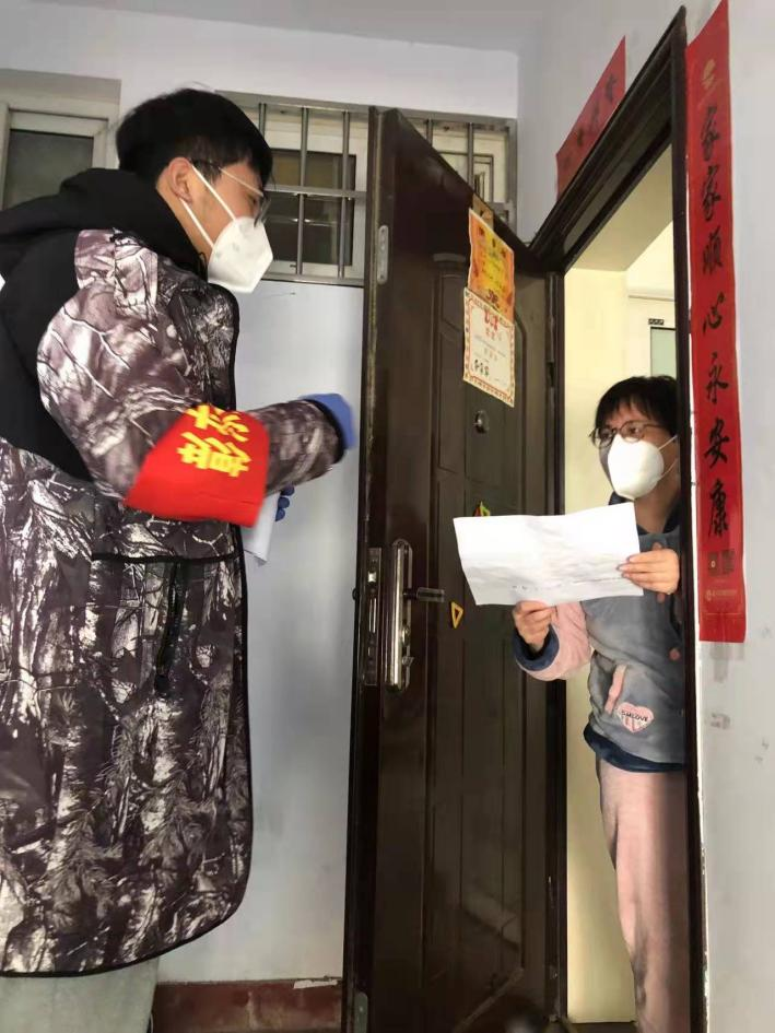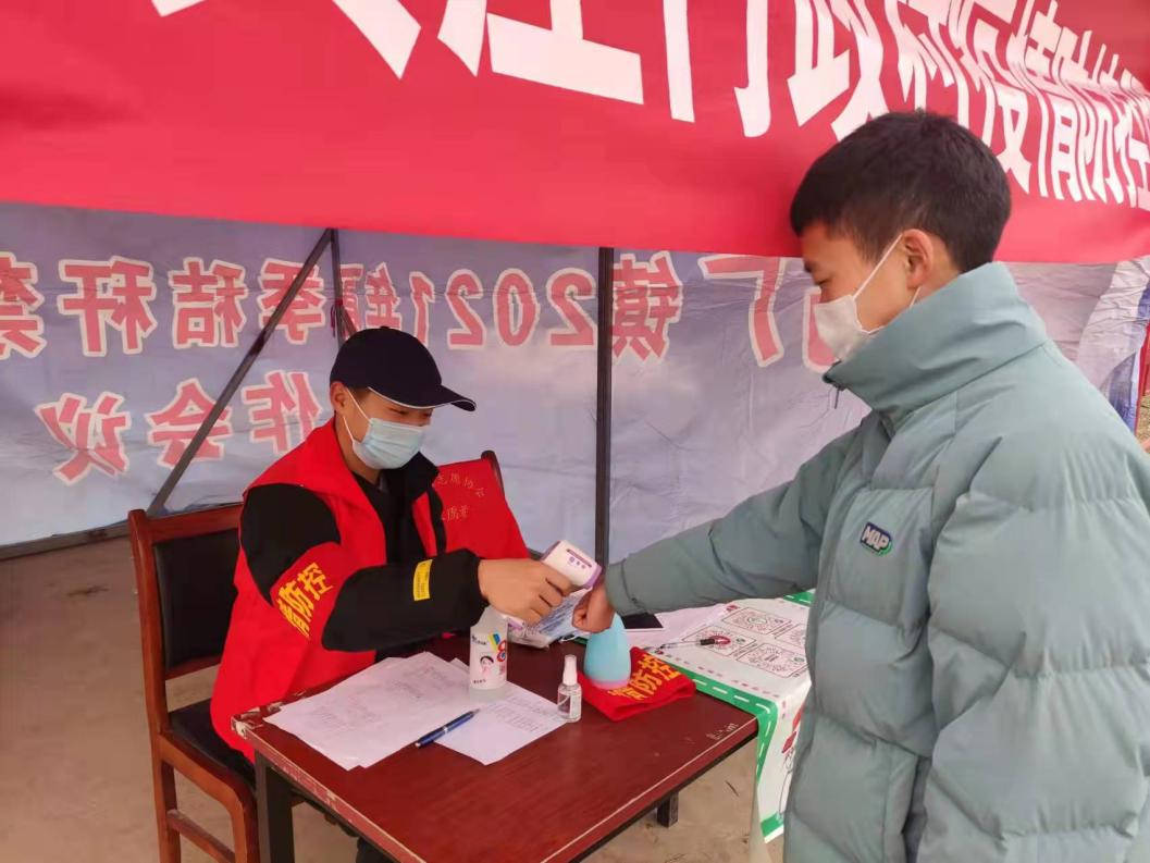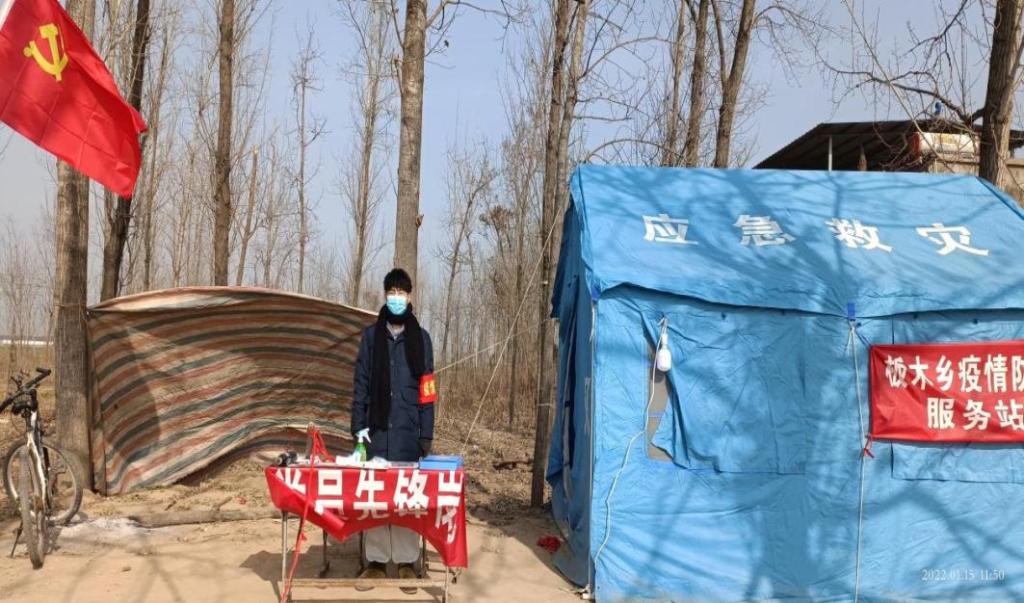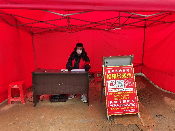 2021级机电3班学生仝晨晨在周口市太康县马厂镇黄庄行政村积极参与疫情防控志愿服务活动,负责登记过往人员信息、测量体温、查看健康码及行程码等工作,他说:“天气虽然很冷,但村民的笑容是暖的。”
