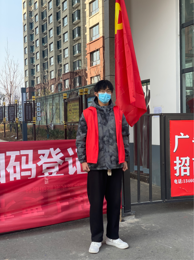 1月12日以来,2020级电气2班学生申旭积极响应社区号召,报名参加安阳市疫情防控志愿服务活动,向社区及居家隔离人员运送防疫物资及生活用品,配合医护人员开展核酸检测工作。他说:“看到大家都这么辛苦,我也想参与进来,做力所能及的事,用自己的实际行动回报社会,回报祖国。”
