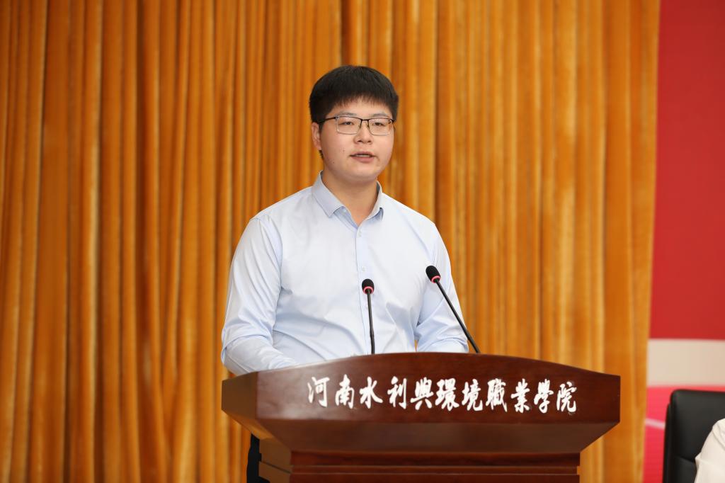 2021级机电工程系学生刘昊宇作为在校生代表发言。他勉励新同学们不仅要具备精湛的专业技能,还要有高尚的道德情操。坚定理想信念,刻苦研习,博采众长,开拓创新,以专业所学服务国家所需,不负党和人民的殷切期望,为实现中华民族伟大复兴而奋斗。