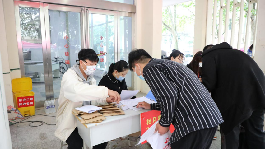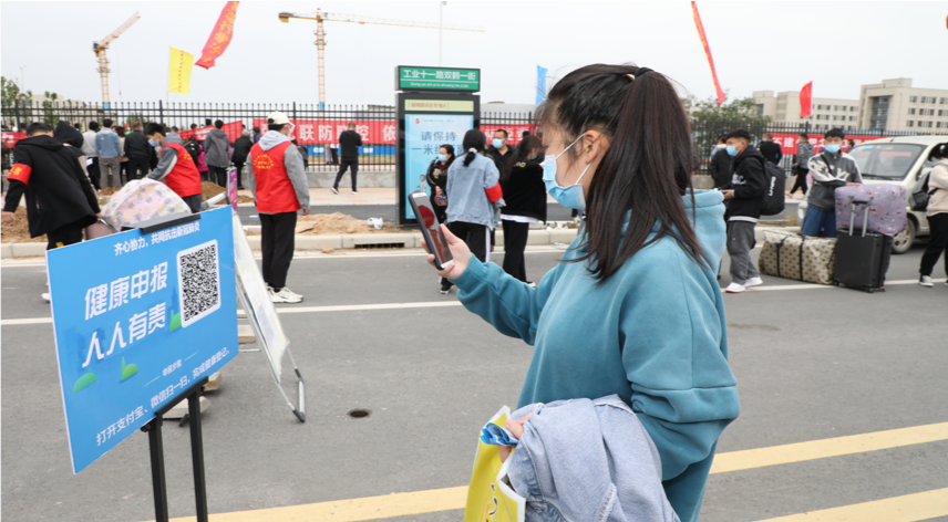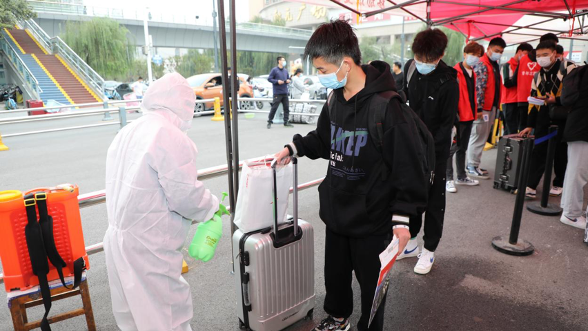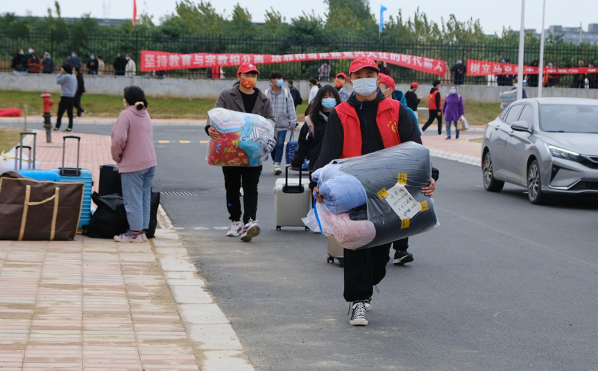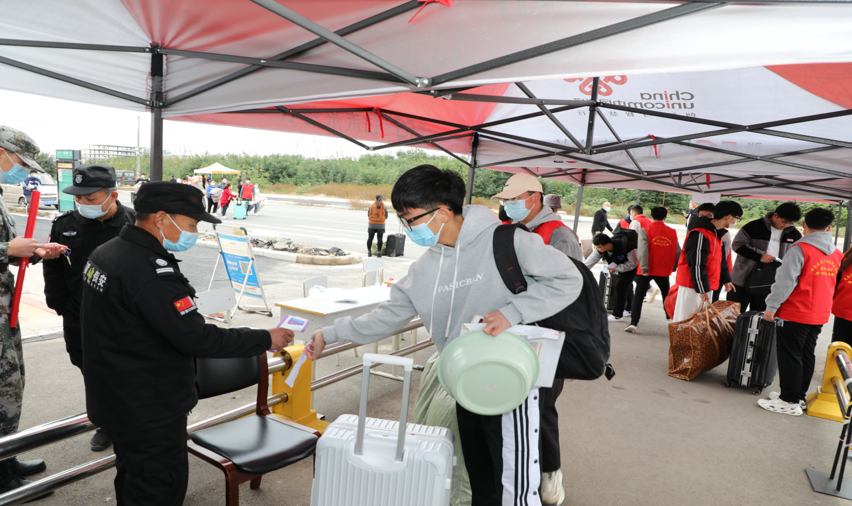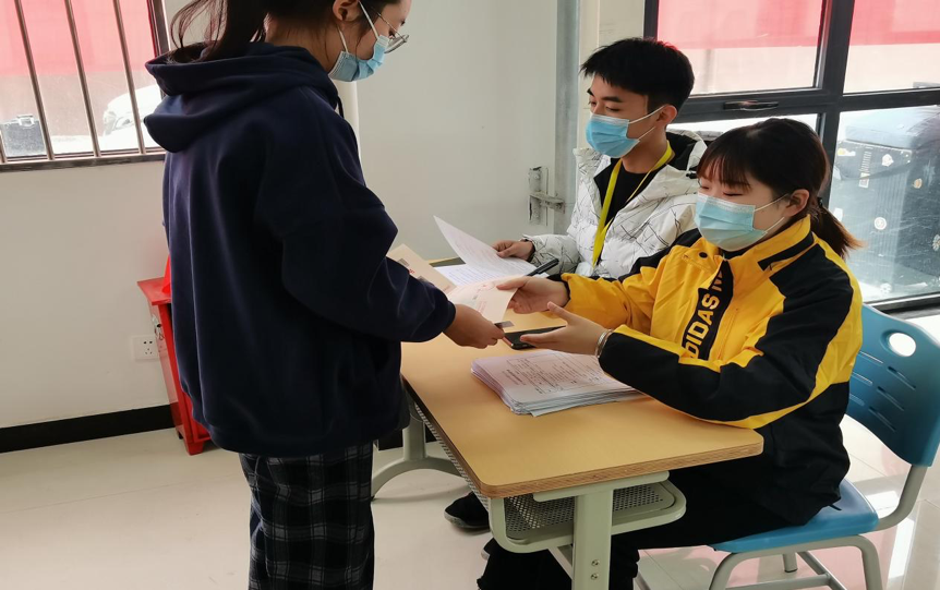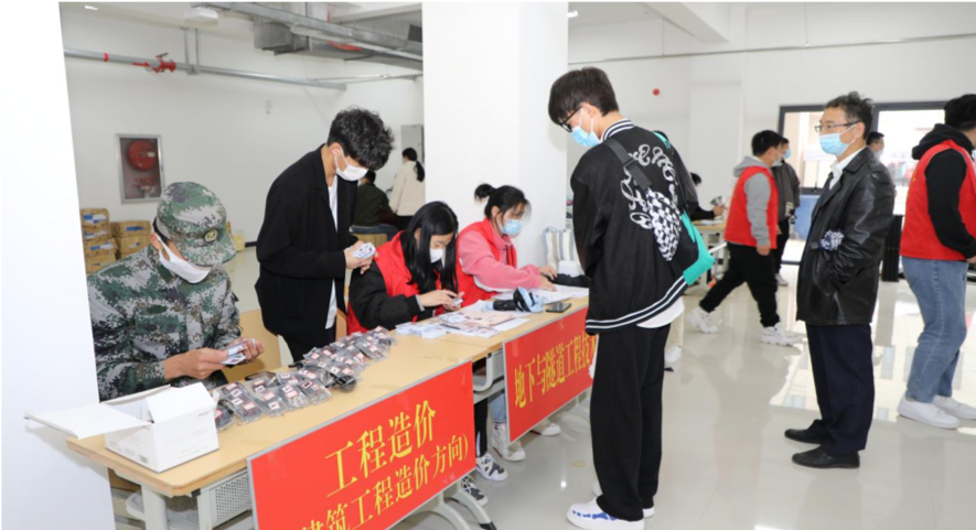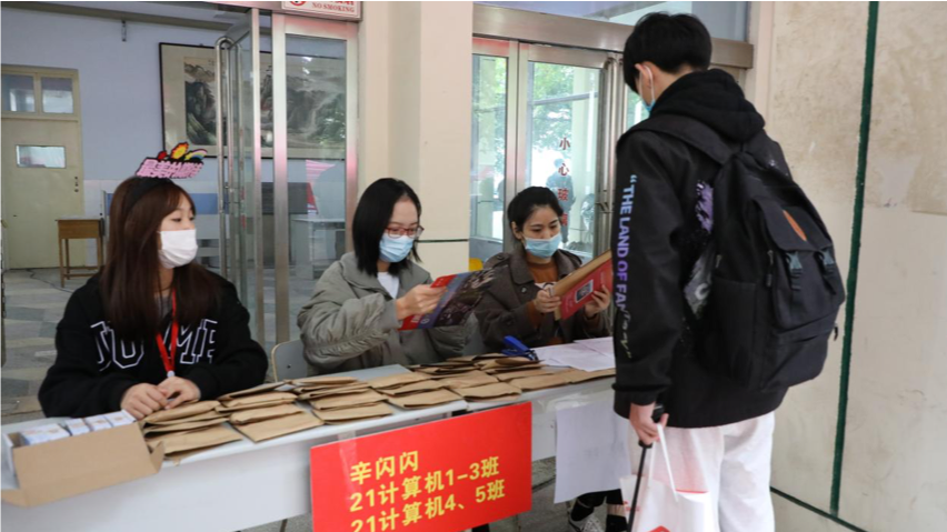 前来报到的新生在学生志愿者的引导下,有序通过新生报到专用通道,在完成健康码、行程卡核验,手部消毒、更换口罩、测量体温、行李消杀等流程后,分别到各报到点正式办理入学手续。