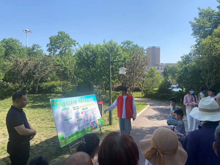 调研结束后,师生们在陈蕃公园开展“六五”环境日公益宣传志愿服务活动。活动通过宣传展板、讲解环保知识、发放宣传资料、拉设宣传横幅等多种形式,为群众讲解展示2021年“六五”环境日“人与自然和谐共生”主题的内涵,宣传普及我省关于开展垃圾分类的相关政策及分类知识,并对环卫工人及小朋友进行垃圾分类实践指导,倡导广大群众积极践行绿色低碳的生活方式,从小事做起,争当环境保护的行动者。活动现场,通过设置环保知识趣味抢答环节,充分调动了群众参与的积极性,共发放宣传资料500余份,接受群众咨询50余次。