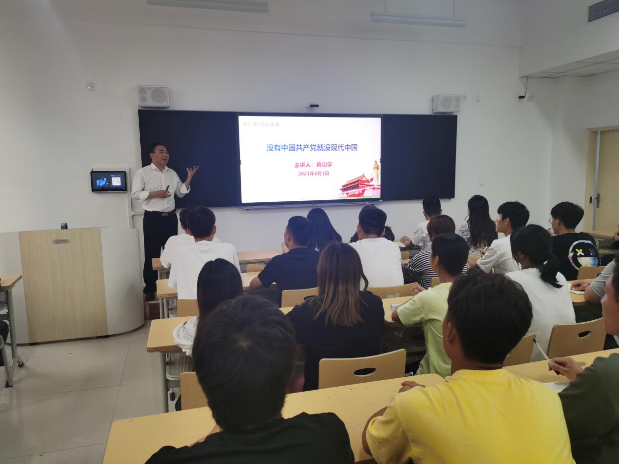 6月1日,副校长黄功学到土木工程系以“没有中国共产党就没现代中国”为主题,向系党员教师和2020级在校生讲了一堂生动的党课。