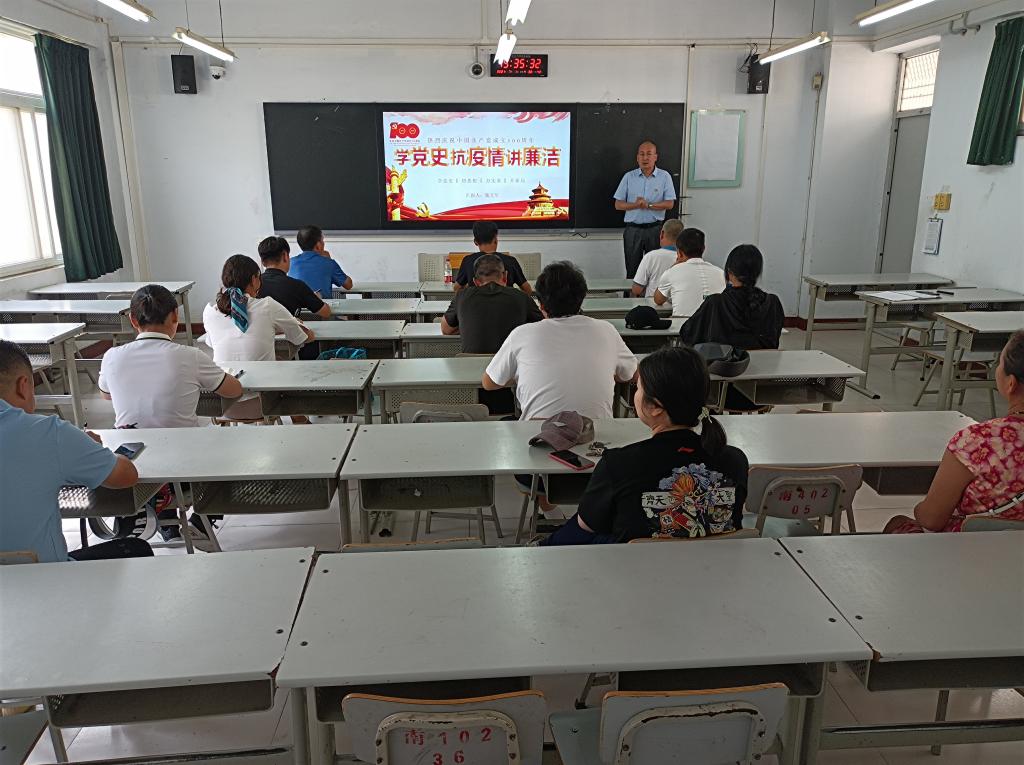 7月1日,校工会主席魏义军以“学党史、抗疫情、讲廉洁”为题,为体育教学部党员教师上党课。