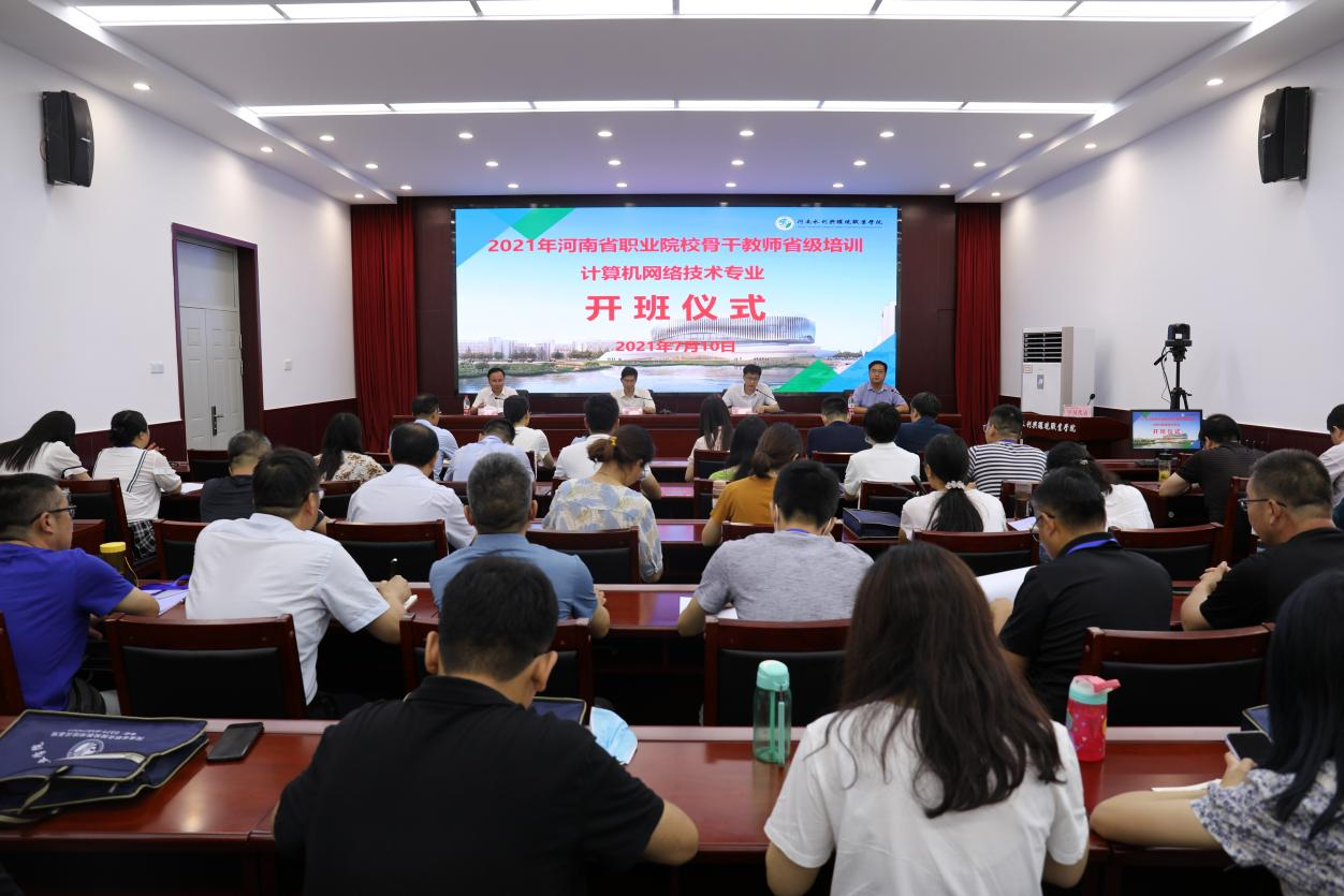 7月10日上午,2021年河南省职业院校骨干教师省级培训班在ylzzcom永利总站线路检测开班,省教育厅职业教育与成人教育处处长秦剑臣,校长郑志宏,副校长黄功学、张凌杰,信息工程系负责人、教师代表及培训班全体学员参加开班仪式。仪式由张凌杰主持。