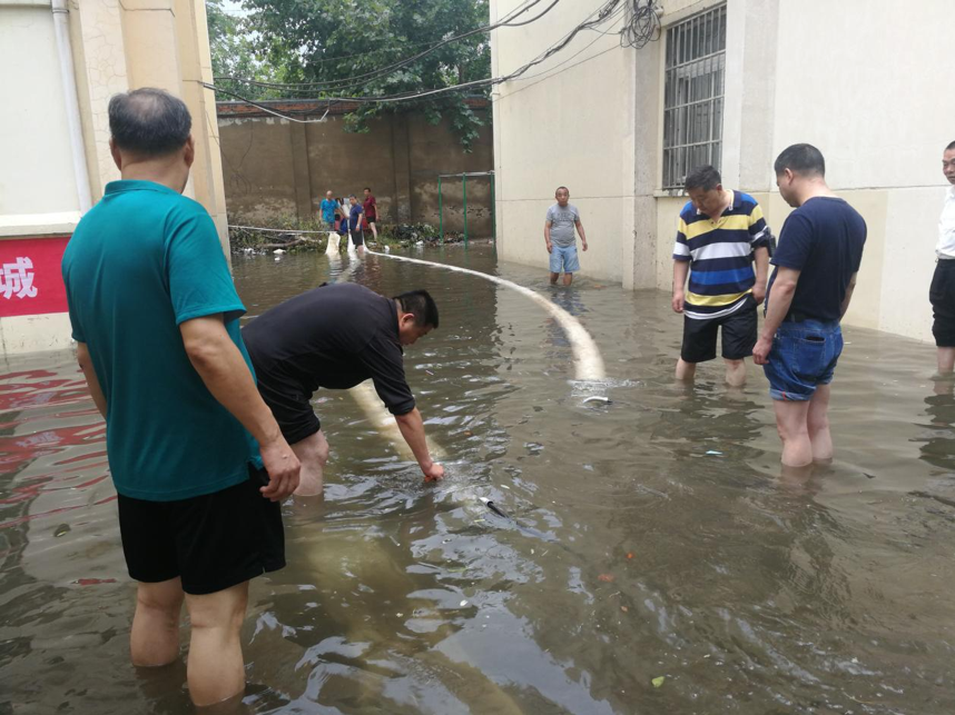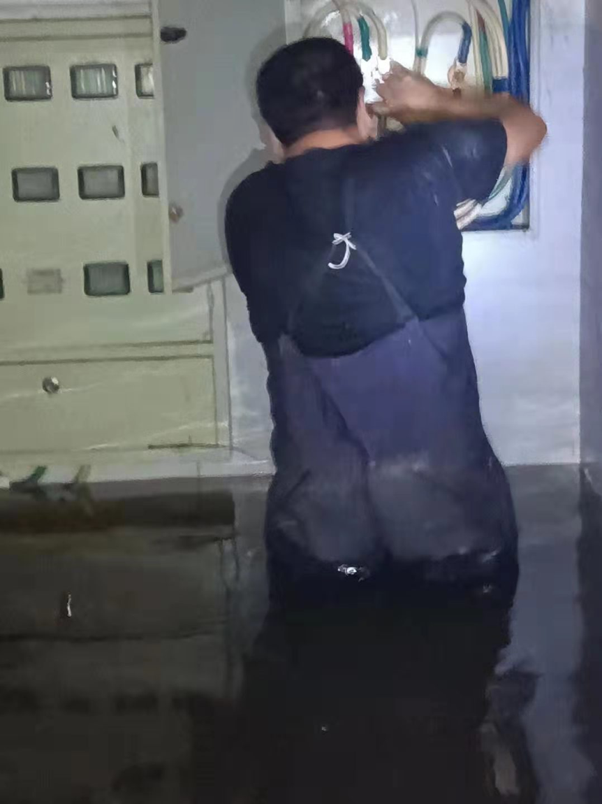 7月20日,在郑州市连续强降雨后,郑州市气象部门发布特大暴雨预警。闻讯后,工会主席魏义军带领总务后勤处处长宋金晓、副处长王晓丽等后勤部门工作人员进行隐患排查,紧急对学生宿舍楼等地下室用沙袋进行了封堵。但雨势过大,校园排水缓慢,积水成河,各地下室、办公楼、实训楼等进水严重。面临排水慢的问题,校党委书记王立正第一时间协调处理排水问题,省防汛抗旱物资储备中心知悉后,紧急援派排水抢险车支援ylzzcom永利总站线路检测,三台抽水泵不间断连续排水除涝。在这个过程中,总务后勤处木工张太玉,电工朱水强、张杰、李沛,水工聂四清,泥工张连志、鲁俊合,工作人员宋洪涛、郝坤宇、张国强,党政办李豫峰,退休职工徐建伟等同志自20日-23日,连续几昼夜坚守在排水工作现场,不眠不休工作。由于长时间在水中冒雨工作,再加上排水口是各类污染物的聚集口,很多同志都出现脚面浮肿和磨伤。23日凌晨4点,校园路面积水基本抽排完毕,总务后勤处同志来不及休息,又紧急转移到家属楼、办公楼、学生宿舍楼等地下室进行抽排水,连续工作6个小时后,各地下室积水位明显下降。救援车离开学校奔赴其他救灾地点后,这些同志借助小型抽水泵继续抽排地下室积水,一直工作到24日凌晨3点多,直至水位过浅才休息。经过几天的不间断工作,校区路面和地下室积水问题得到基本解决,为后续防汛救灾工作提供了基本条件。这些同志由于长时间熬夜、劳累工作,已疲惫不堪。