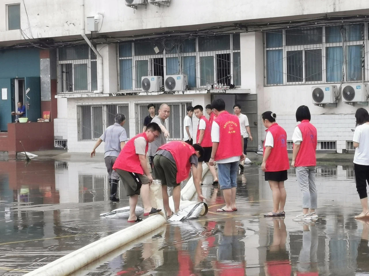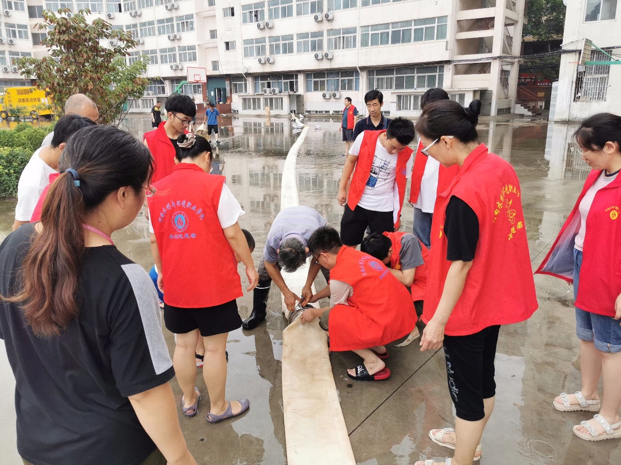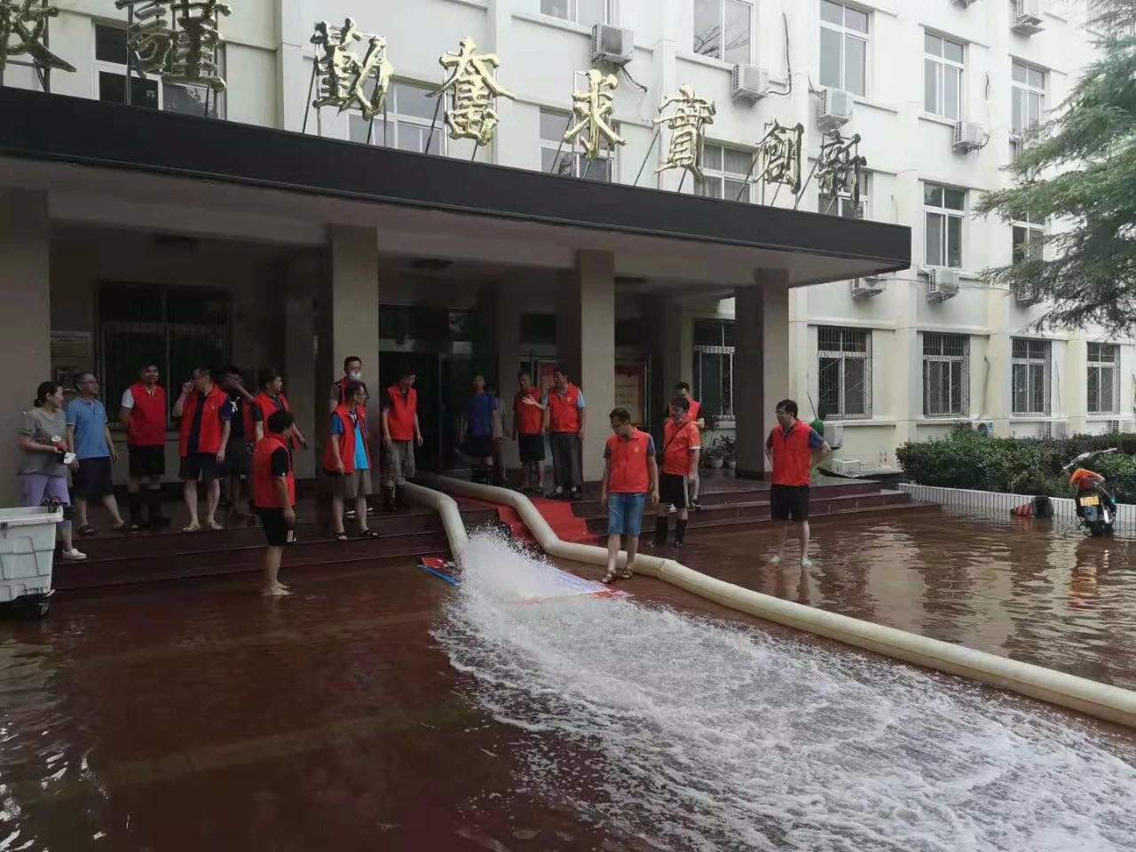 在排涝工作中,工会主席魏义军和总务后勤处处长宋金晓及后勤部门工作人员,发扬连续作战、连夜作战精神,全天候冲锋在第一线,长时间泡在水中工作,付出了辛勤汗水,做出了突出贡献。党政部门、各学生部门、教学部门的主要负责同志也都一直处于防汛排涝现场,在加强学生安全教育管理、协调教学培训活动、排查安全隐患等方面做了大量工作,校内积水问题得到极大改善。