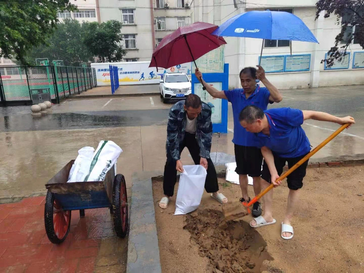 在新校区防汛工作中,副校长惠大众和党政办公室主任张志远、建管局总工程师王海周等建管局同志始终坚守在工作一线,不惧风雨,昼夜摸排校区低洼防汛重点区域,分类制定防汛预案;增加巡查次数,严密掌握管网、管井、路网、主体建筑等设施的受损情况,做到险情及时发现、准确处理;并与校区各参建单位加强沟通,积极协调恢复生产工作,力保校区工程按时保质完成。