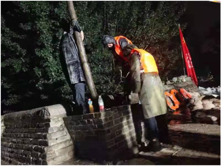 学生陈世博在新乡市多个抗汛救援志愿服务站,参加装沙堵口、阻截洪水等志愿服务活动。