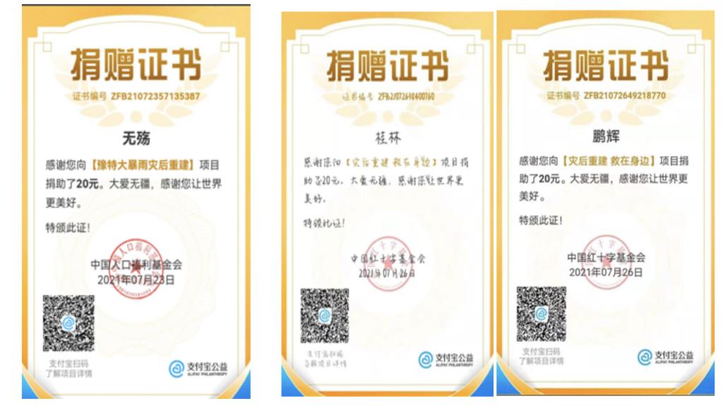 20机械-工艺1班学生杨英杰、20机电1班学生陈桂林、20机电1班学生韩鹏辉、19模具1班学生范鹏飞自发捐款。