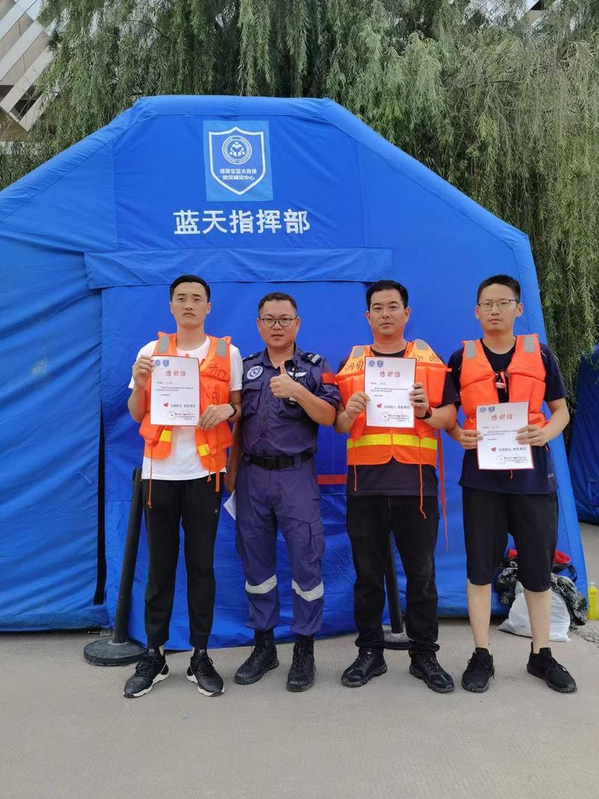 在摆满物资的仓库,我们一起高喊“团结就是力量”,我们一起高唱国歌,铿锵有力的声音在心里扎根,浸湿了眼眶,我真正感受到了人民有信仰,国家有力量,民族有希望!直到零点多,还一直有捐赠物资陆续被送过来,志愿者们都不舍得回家,都想在这里尽自己的一份力。大家争分夺秒的搬运物资,相互加油打气,共同高喊河南加油!凌晨两点多,我和志愿者张春雨负责看守物资,我们就地躺下休息,此时有些降雨,内心还是有几丝恐慌,我们都未能睡着。第二天早上七点,又有许多热心群众过来报名参加志愿者活动。当交通拥堵时,我和队友在指定路口指挥交通,保持救援通道畅通。之后两天,我申请跟随救援队去了几个较为严重的灾区进行了一线救援,并在第三天转移到了新的志愿者后勤保障地——航海体育场。自这天起,我们分别到二七区马寨镇、白沙镇的阜外心血管病医院、新密市平陌镇葛沟村、周口扶沟、荥阳、巩义和鹤壁等地,为受灾群众送去救援物资,解救受困群众……。