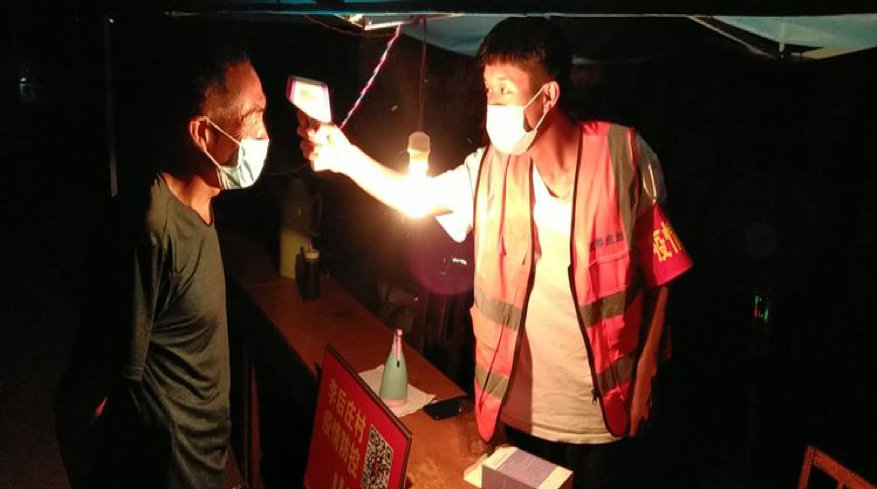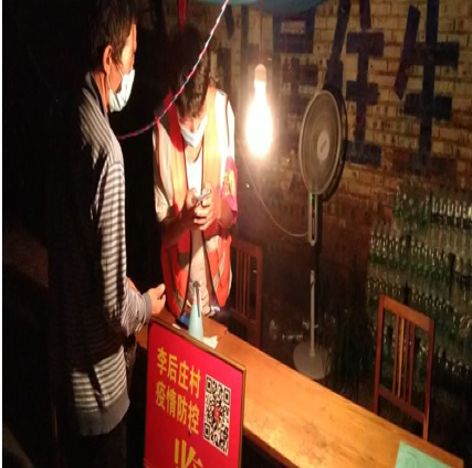 20级建信1班学生任俊峰,在家乡焦作市武陟县北郭乡李后庄村与村工作人员一同在疫情防控卡点站岗值守,协助村委会工作人员排查摸底,登记核酸检测人员,入户发放疫情防控明白卡,提醒村民尽量留在家中,减少不必要的外出。