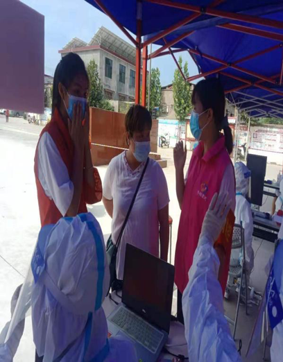 20级室内设计2班学生吴若楠在漯河市临颍县村民核酸检测点,协助医护人员进行场地消杀,帮助村民进行核酸检测线上预约,搀扶行动困难的老人。