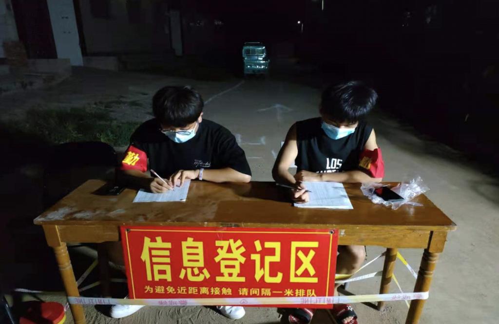 20级营销2班学生赵柯庆参与登记受检人员信息和卡点站岗等志愿服务活动。