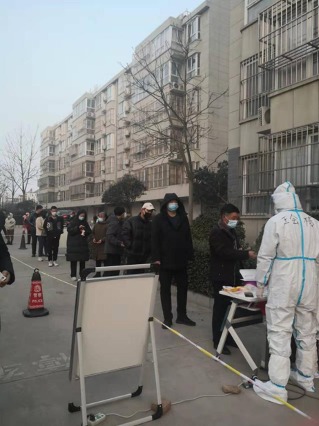 2020级水工一班惠利硕在惠庄村社区协助医护人员做好核酸检测、人员登记等工作。他说,“即使温度再低、天再晚,只要有需要,我就在一线。”