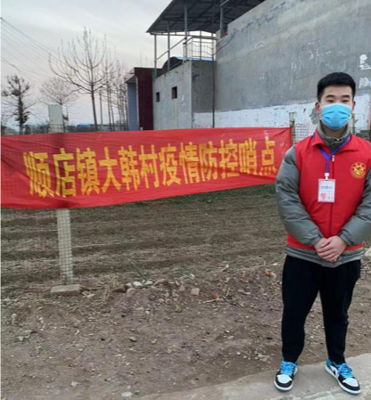 自1月6日起,2021级水建4班李兴龙在许昌市襄城县库庄镇李树村配合村干部做好卡点执勤、测量体温、人员登记等工作。