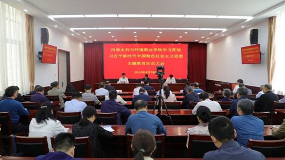李广慧指出,在全党深入开展学习贯彻习近平新时代中国特色社会主义思想主题教育,是党中央为全面贯彻党的二十大精神、动员全党同志为完成党的中心任务而团结奋斗所作的重大部署,是深入推进新时代党的建设新的伟大工程的重大部署。全校各级党组织和广大党员、干部要深入学习贯彻习近平总书记重要讲话精神,从坚定捍卫“两个确立”、坚决做到“两个维护”的高度深刻把握主题教育的重大政治意义、理论意义、实践意义,不折不扣抓好贯彻落实。一是提高政治站位,落实政治责任,深刻认识开展主题教育重大意义。开展主题教育是加强政治建设、增强斗争精神的必然要求,是坚持思想建党、建设学习型政党的迫切需要,是加强作风建设、增强服务发展能力的根本保证,是深化自我革新、推动事业发展的根本要求。全校党员、干部要迅速把思想和行动统一到中央、省委决策部署和省委教育工委工作安排上来,坚持不懈用习近平新时代中国特色社会主义思想凝心铸魂,始终保持共产党人的政治本色,坚持在知行合一中主动担当作为,提升能力本领建功新时代。二是把准目标要求,聚焦根本任务,认真落实主题教育各项工作任务。全校各级党员、干部在开展主题教育中要做到“四个自觉”,把握“五个具体目标”,落实“五大重点措施”。要牢牢把握开展这次主题教育的总体要求,在理论学习上“下苦功”,在调查研究上“扑下身”,在推动发展上“见实效”,在检视整改上“动真格”,汇聚调研合力、责任合力、整改合力、发展合力。三是严格工作标准,精心组织实施,切实保障主题教育取得扎实成效。要注重在“实”字上下功夫,把“理论学习、调查研究、推动发展、检视整改、建章立制”等贯通起来,联系学校实际制定举措,确保主题教育有力有序有效推进、各项任务和要求落地生根。要压实工作责任,注重统筹融合,坚持求真务实,建立完善巩固深化主题教育的长效机制。李广慧表示,河南水环学院作为委管高校,参加第一批学习贯彻习近平新时代中国特色社会主义思想主题教育,将以最坚决的态度、最有力的措施、最严实的作风贯彻落实主题教育部署安排,不断把学习贯彻习近平新时代中国特色社会主义思想引向深入,把主题教育焕发出的热情和干劲持续转化为“强校兴校治校”的思想共识、“乘势而上、勇毅前行”的强大动力,团结带领全校师生员工,坚持立德树人根本任务,聚焦双高建设深化改革,立足内涵发展提质培优,进一步完善治理体系,提升治理能力,以实干实绩开创学校事业发展新局面,努力为现代化河南建设凝心聚力增势赋能。