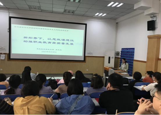 5月30日,思想政治理论教学部党支部书记、副主任郝思惠以《以思政课建设助推职业教育高质量发展》为题,为全体思政教师讲授专题党课。